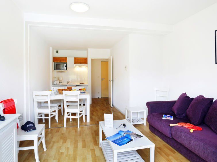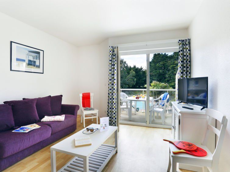 "Ker Mael", 1-room apartment 27 m2. Practical furnishings: living/sleeping room with 1 double sofabed, dining table and TV can be hired. Open alcove, without wardrobe with 2 sleeping facilities. Kitchenette (2 hot plates, dishwasher, toaster, microwave, electric coffee machine). Bath/WC or shower/WC.