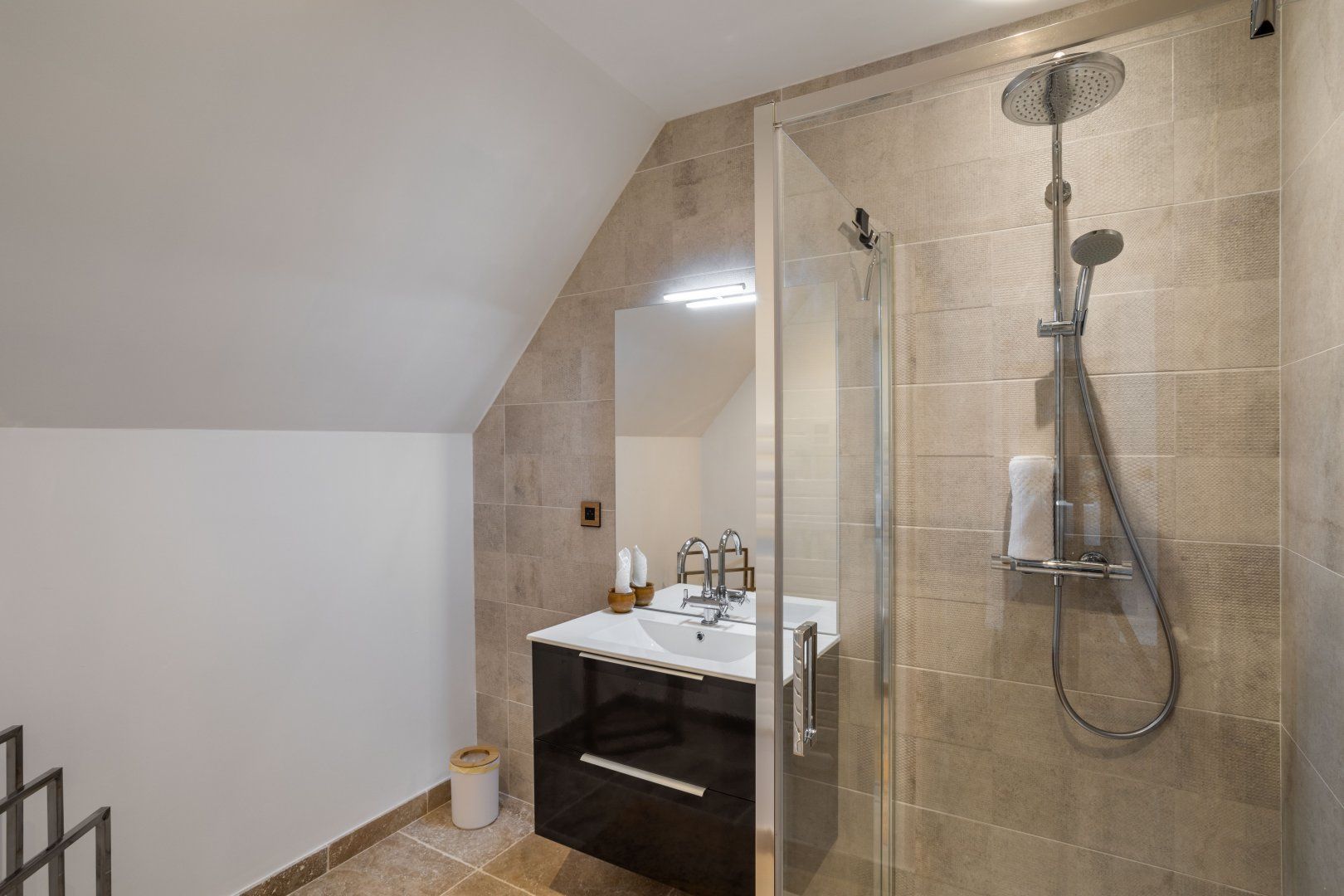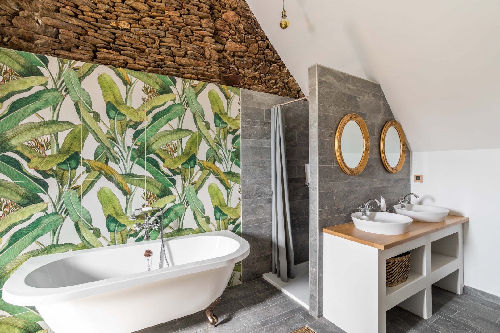 The beautifully finished living area is characterised by its plush furnishings and luxurious finishing touches, lending the entire space a sense of glamour and of occasion. The kitchen, with the same eye-catching exposed stone detailing which runs throughout the property, provides a great place for everyone to come together and prepare a meal based on Breton specialities, including the freshest local seafood pulled from the water which lies just a stone’s throw away. For those with a hankering for vitamin-sea, the superb wide sandy beach of La Guimorais is just 5-minutes’ walk from the property.