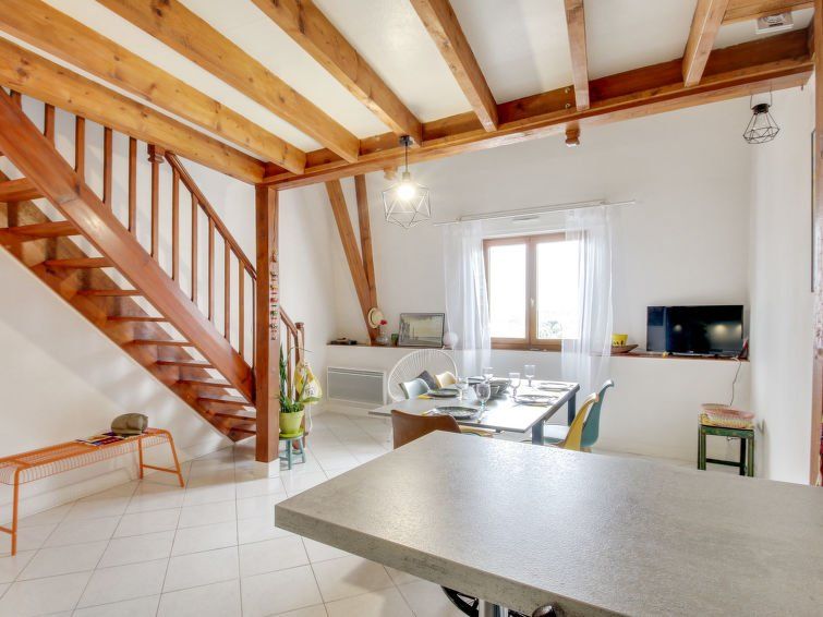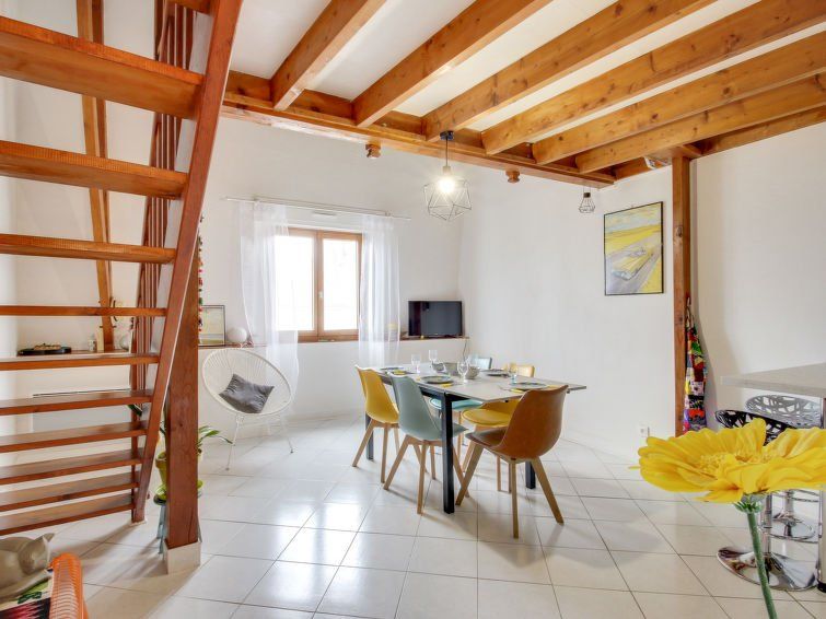 "Emeuraude", 2-room apartment 62 m2 on 3rd floor, south facing position. Beautiful and tasteful furnishings: living/dining room with TV (flat screen). Open kitchen (oven, 4 induction hot plates, microwave, freezer, electric coffee machine). Sep. WC. Upper floor: gallery with 1 double sofabed (1 x 140 cm, length 190 cm).