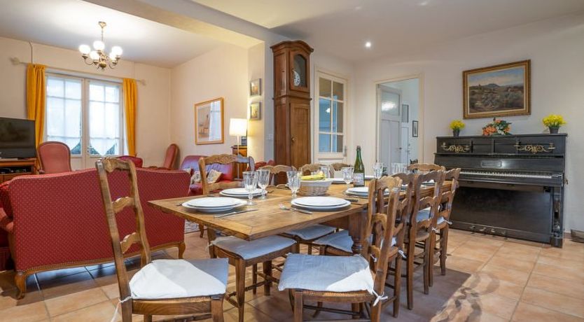 6-room house 160 m2 on 2 levels. Practical and comfortable furnishings: living/dining room with TV (flat screen), hi-fi system and DVD. Exit to the terrace. 1 room with 1 french bed (1 x 180 cm, length 200 cm), TV (flat screen). Large kitchen (5 hot plates, oven, dishwasher, toaster, kettle, microwave, electric coffee machine, Capsules for coffee machine (SENSEO) extra, raclette grill) with dining table.