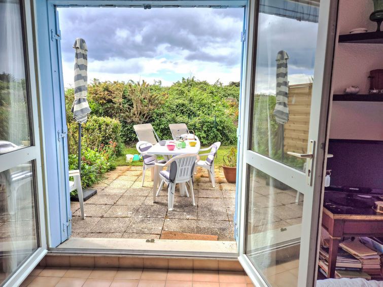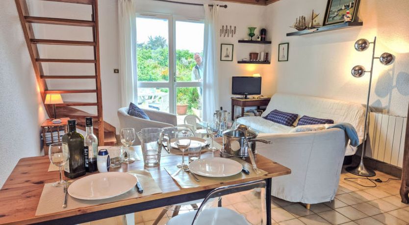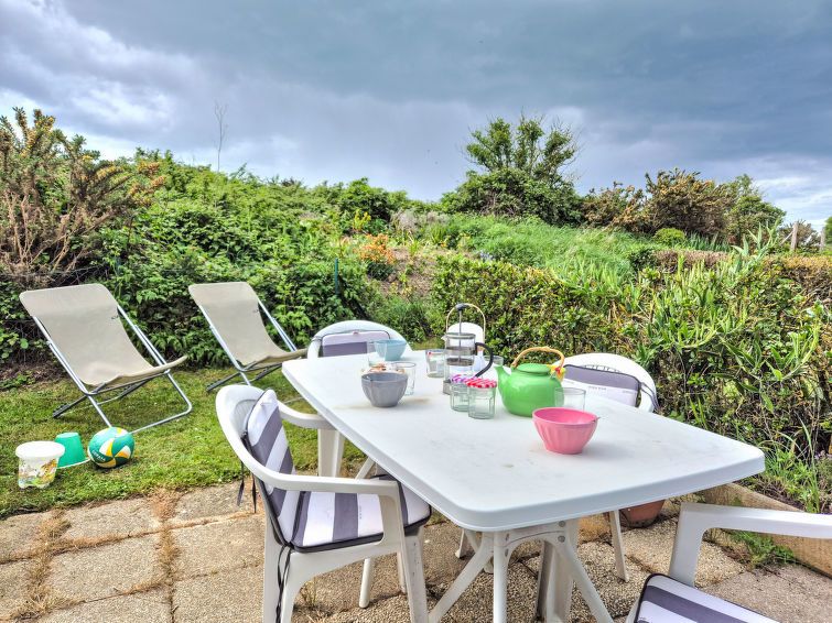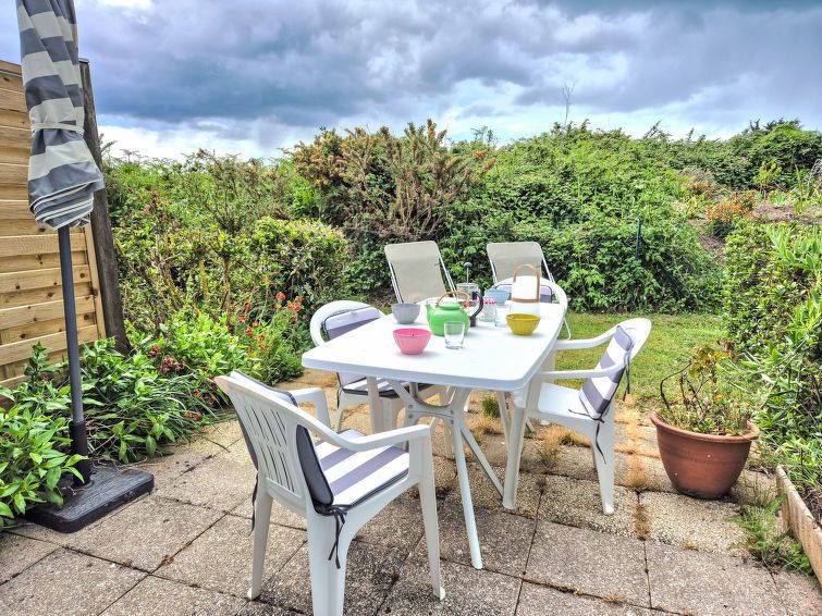 3-room terraced house 47 m2 on 2 levels. Comfortable and beautiful furnishings: large living/dining room with TV (flat screen). Exit to the garden, to the terrace. Kitchenette (dishwasher, 2 induction hot plates, toaster, kettle, electric coffee machine, combination microwave, fondue Set (cheese)).