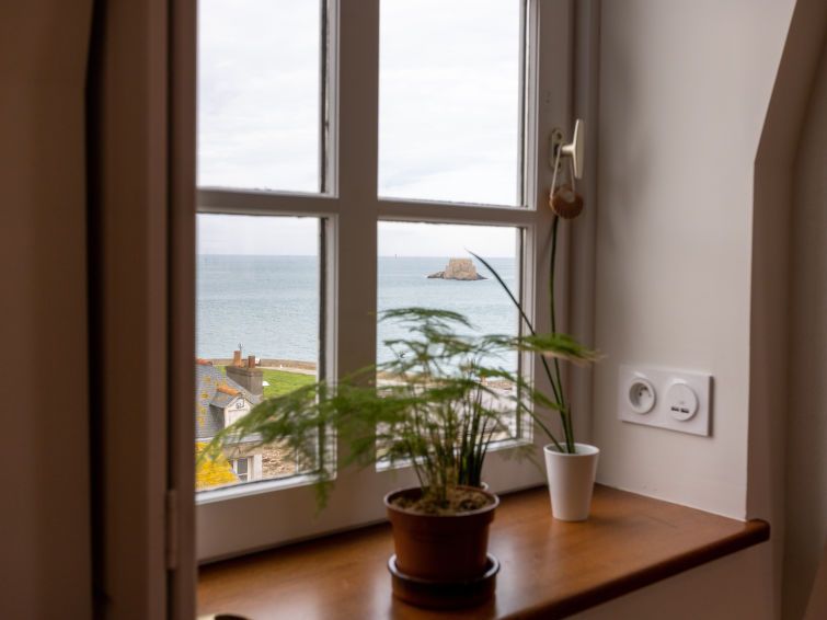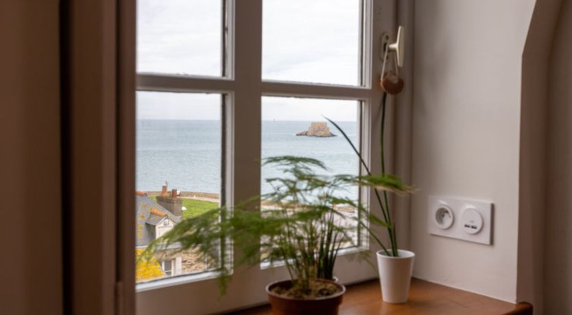 "le Grand Bé", 3-room apartment 90 m2 on 3rd floor. Spacious and bright, fully renovated, beautiful and modern furnishings: large living room with TV (flat screen). 1 room with 1 french bed (1 x 140 cm, length 190 cm), shower. 1 room, window onto the courtyard with 1 french bed (1 x 140 cm, length 190 cm).