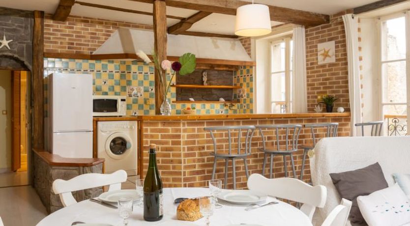 "le Malouin", 2-room apartment 40 m2, on the upper floor. Practical and beautiful furnishings: living/dining room with 1 sofabed (140 cm, length 190 cm), TV (flat screen). 1 room with 1 french bed (1 x 140 cm, length 190 cm). Open kitchen (oven, dishwasher, 4 ceramic glass hob hotplates, toaster, kettle, microwave, freezer, electric coffee machine, Capsules for coffee machine (Nespresso) extra).