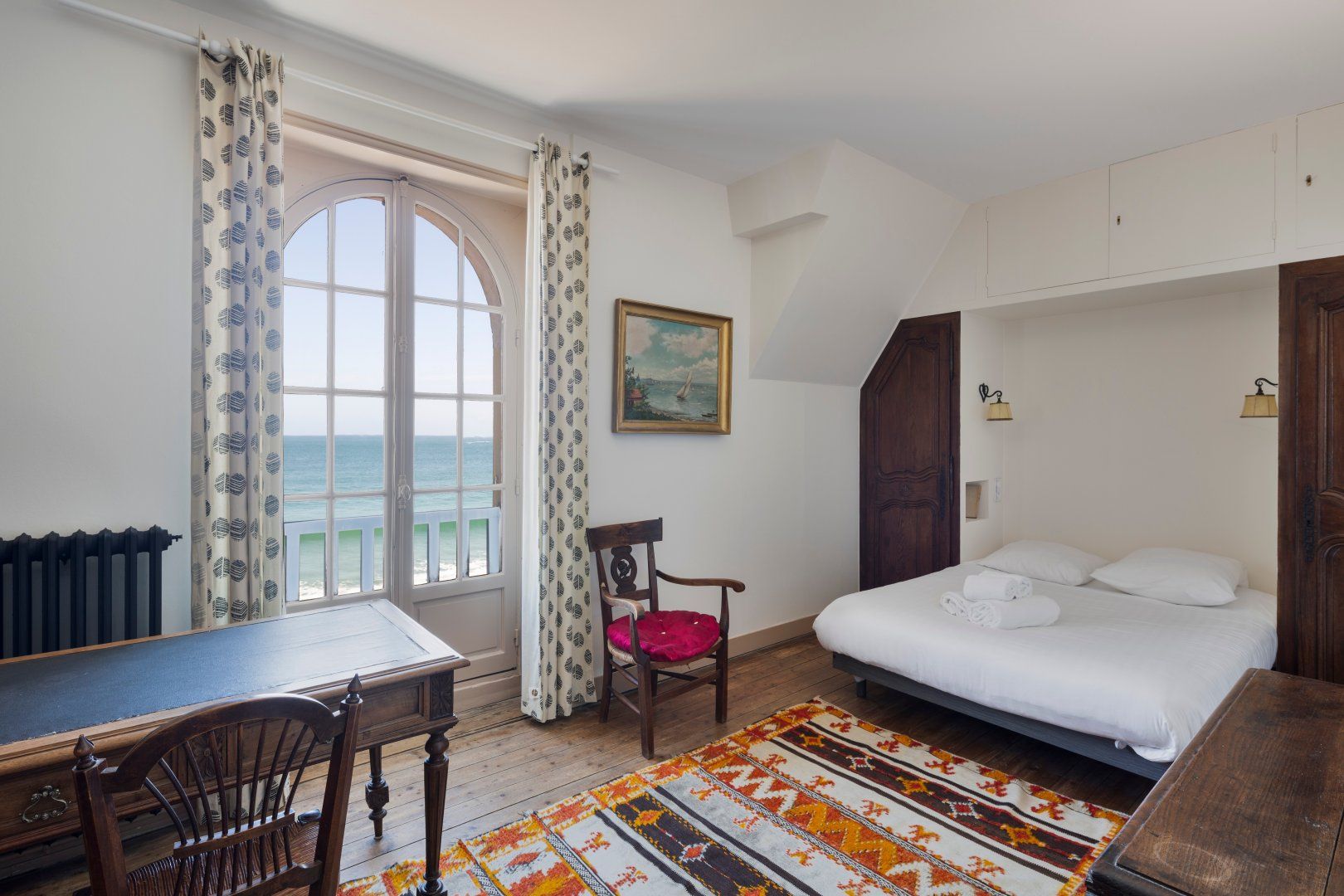 A serene spot on the beachfront in Saint-Malo, this seaside escape invites guests to make ever-lasting memories in delightfully blissful conditions. Built in 1906, you'll be just metres away from the sandy shores of le Grande Plage. With direct beach access via the stairs in front of the villa, from here, you're encouraged to meditate, do yoga, or relax while taking in the stunning blue views with a cup of tea in hand. Inside the beach villa, classic and nautical designs present a home bursting with character. We love the antique furniture pieces which add traditional French charm with bags of elegance.