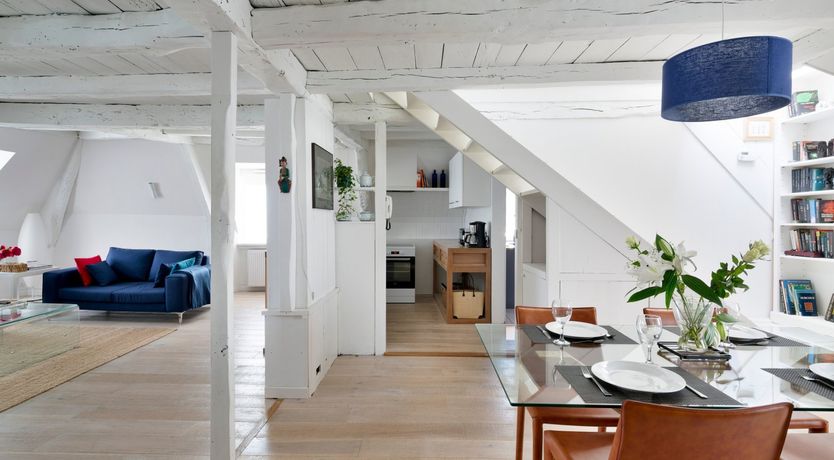 Emanating quintessential coastal charm, this delightful holiday apartment in the storybook town of Saint-Malo combines elements of rustic-chic – courtesy of the exposed stone detailing – with thoroughly modern influences.
