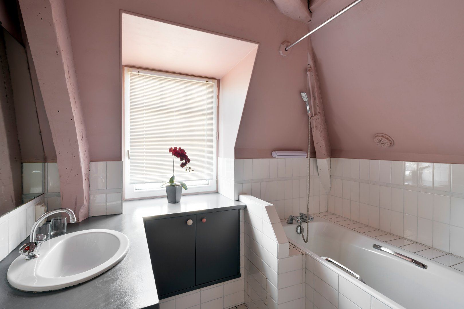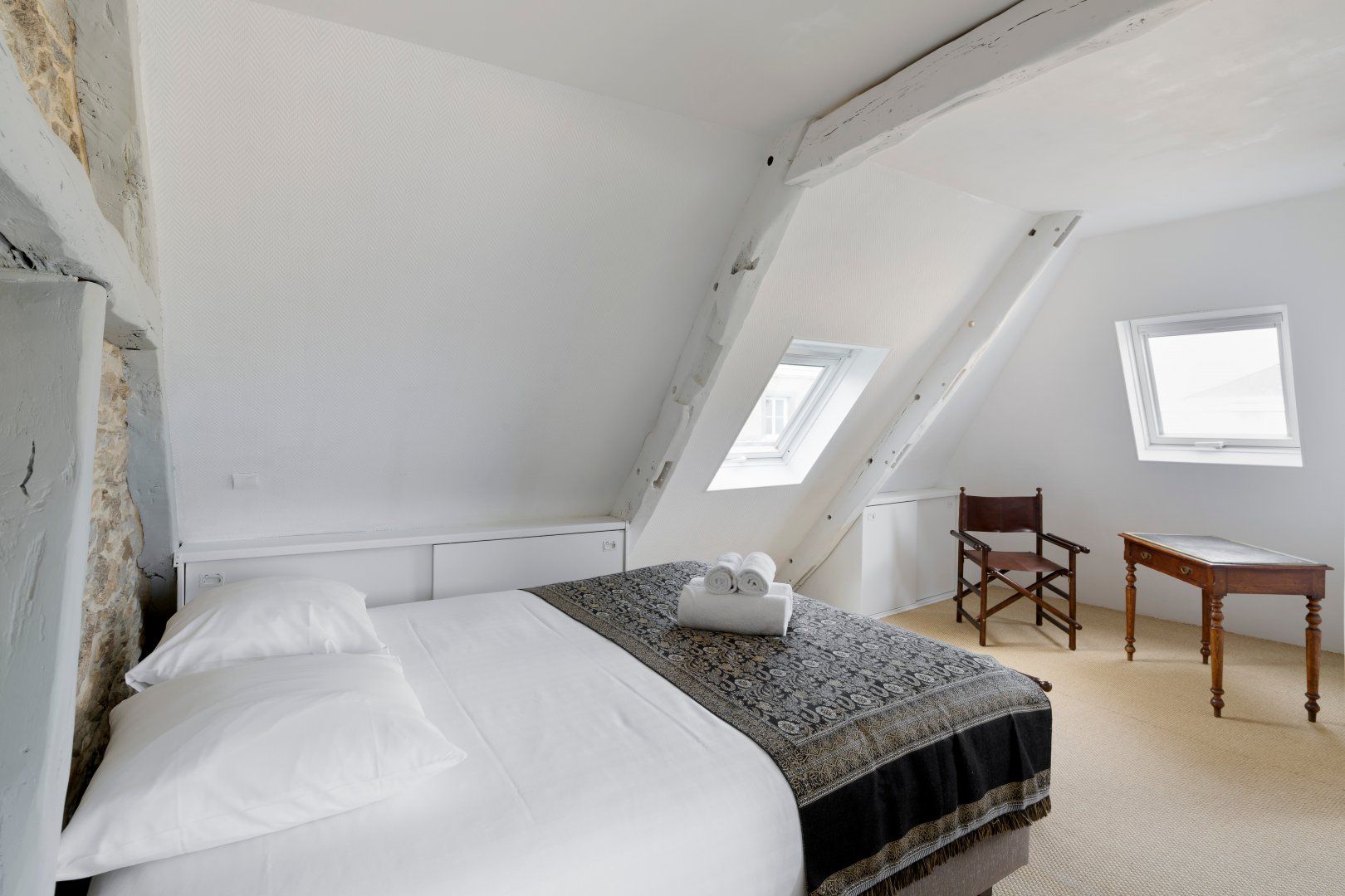 Whitewashed wooden beams and high sloping ceilings are the primary features of the living area which give you a sense of both the building's history and its timeless charm. Light fills each room through large windows, illuminating cosy corners that are just made for curling up with a good book and a cup of tea.