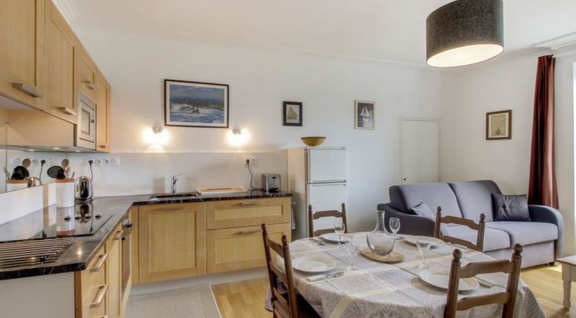 2-room apartment 42 m2 on 1st floor, south facing position. Bright, comfortable and beautiful furnishings: living/dining room with 1 double sofabed (1 x 140 cm, length 190 cm), TV (flat screen). 1 room with 1 french bed (1 x 140 cm, length 190 cm). Open kitchen (oven, dishwasher, 4 ceramic glass hob hotplates, microwave, freezer, electric coffee machine).