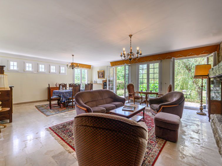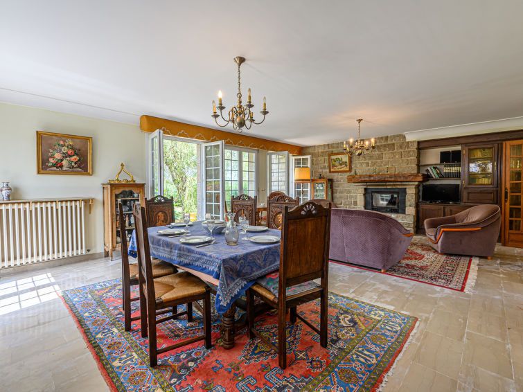 "Les Presses", 5-room house 170 m2 on 2 levels. Practical furnishings: living/dining room with open-hearth fireplace (only for decoration), TV (flat screen). Exit to the terrace. 1 room with 1 french bed (1 x 140 cm, length 190 cm), bathroom, bidet, separate WC and TV (flat screen).