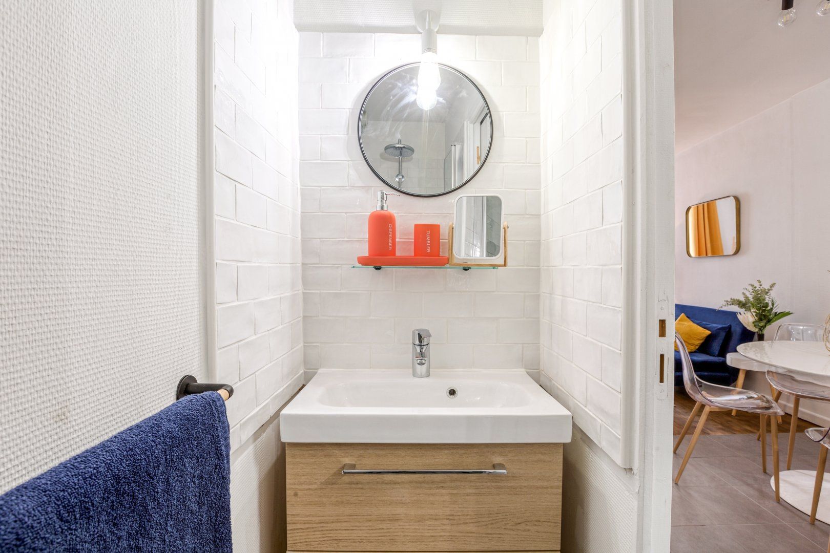 Throwing a contemporary twist on Art Deco design, this home is brilliant for business trips and romantic getaways alike. Wake up early and wander into the kitchen to make crepes for breakfast. Then, take a cup of Nespresso coffee over to this little workstation and check your emails. Before you go out sightseeing, freshen up beneath the rainfall shower. When you come back in the evening, we're sure you'll want to snuggle on this blue velvet sofa. Just don't forget to open a bottle of French wine as you plan out tomorrow's itinerary.