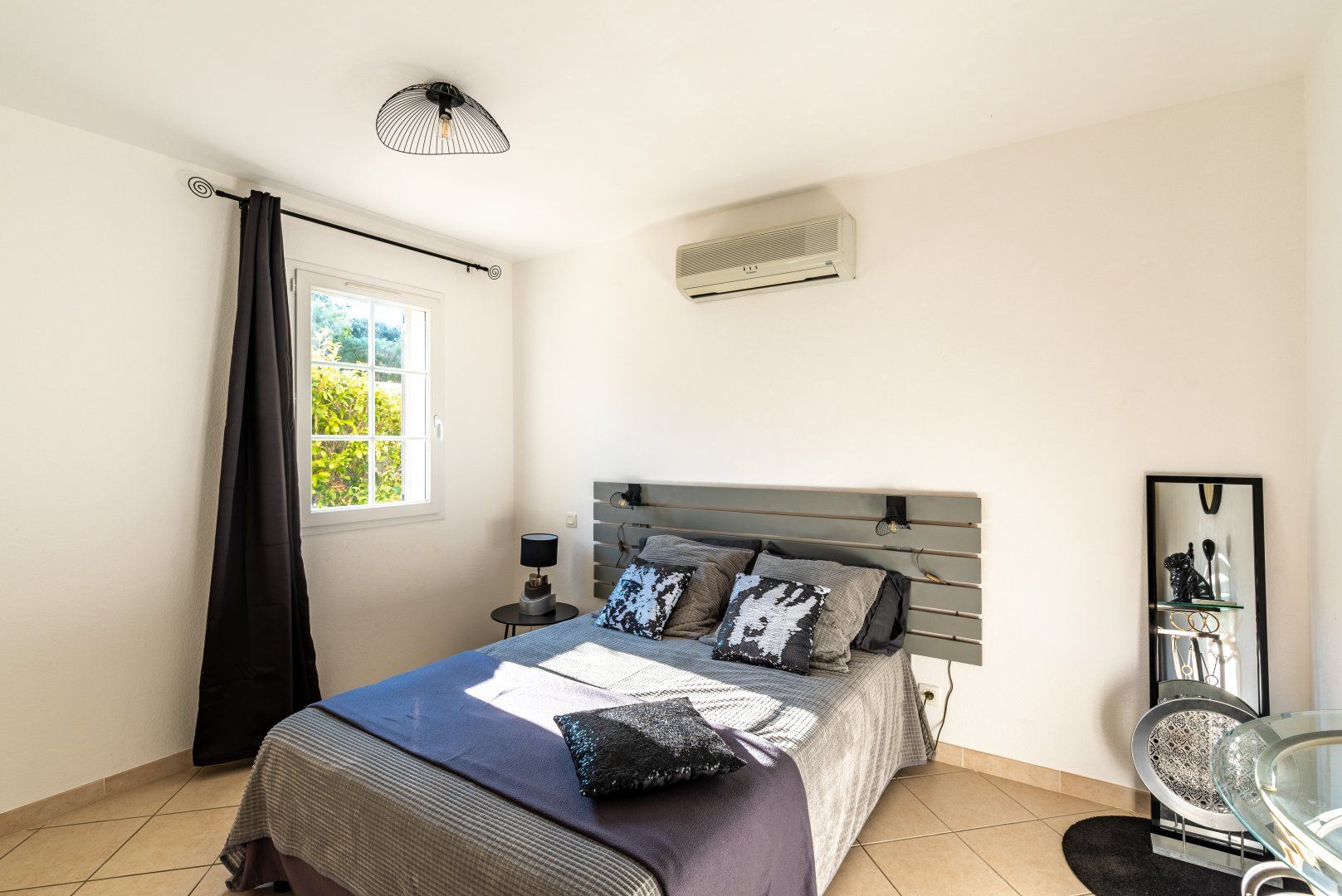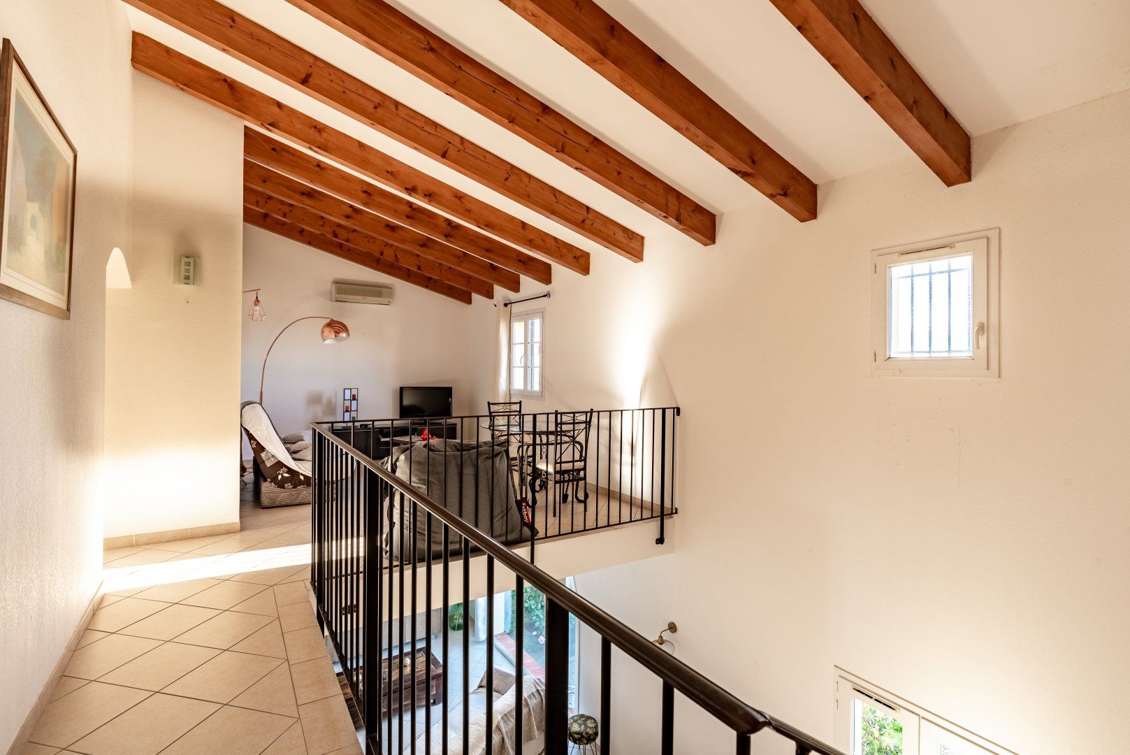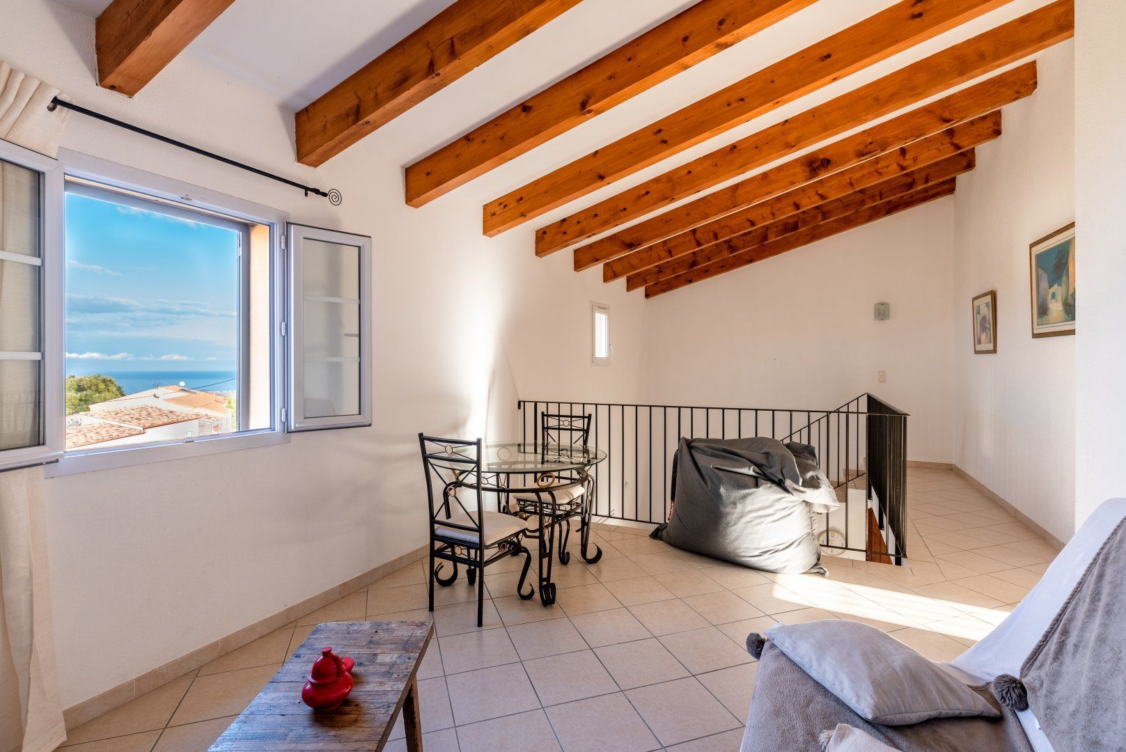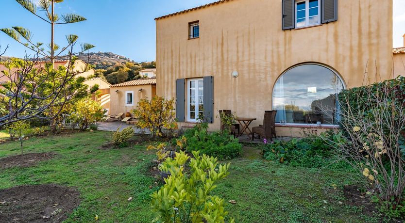 Making a stunning first impression with its terracotta-coloured walls and shutters, the real show-stopping feature of this home is actually found around the back where a large, arching window acts as a portal between the indoor space and the lush garden, and the sea views beyond that.