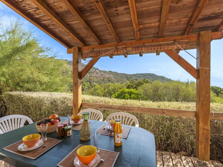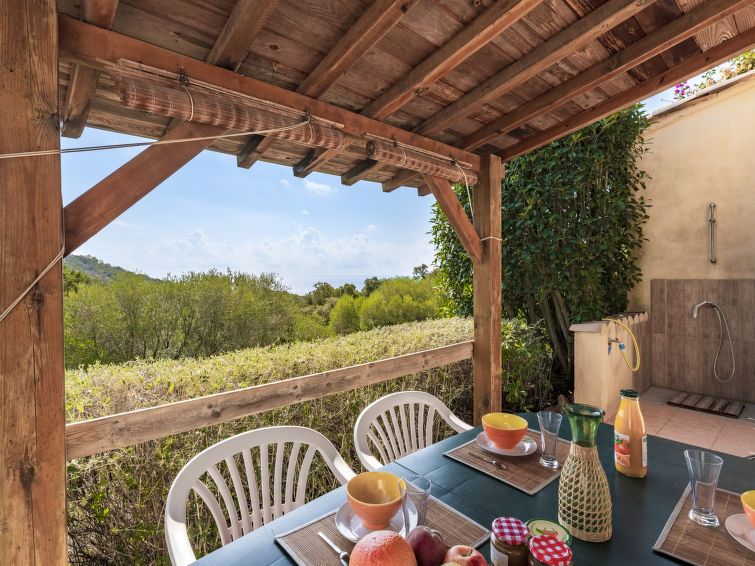 "Murticcio 1", 3-room semi-detached house 55 m2. Living/dining room with TV (flat screen). Exit to the terrace. 1 room with 1 double bed (1 x 140 cm, length 190 cm), air conditioning. 1 room with 2 beds (90 cm, length 190 cm), air conditioning. Kitchenette (4 hot plates, oven, dishwasher, toaster, kettle, microwave, electric coffee machine).