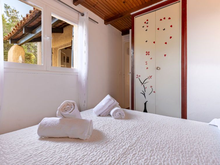 "Casa Cala Rossa", 3-room house 45 m2. Living/dining room with 1 sofabed (140 cm, length 190 cm). Exit to the terrace. 1 room with 1 french bed (140 cm, length 190 cm). 1 room with 2 beds (90 cm, length 190 cm). Kitchenette (2 gas rings, toaster, kettle, microwave, freezer, electric coffee machine).
