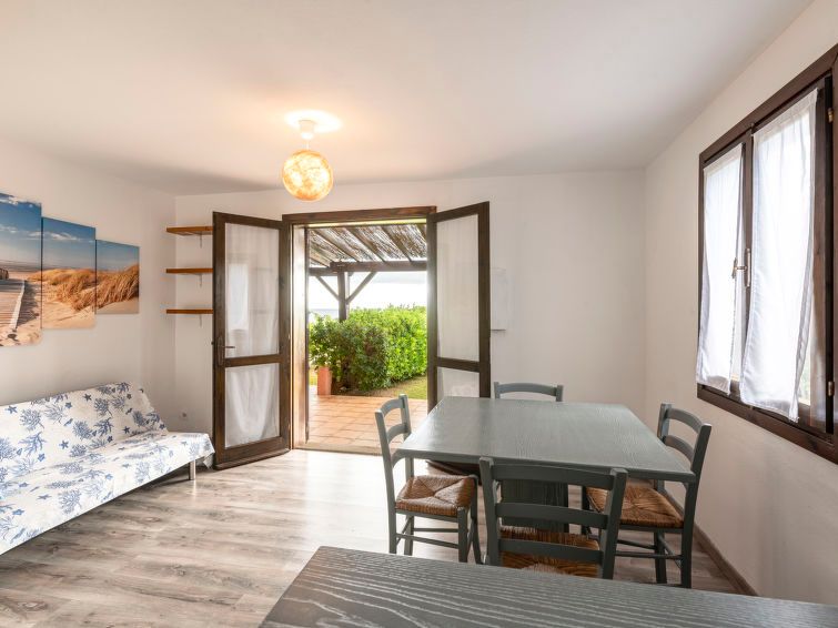 "Villa 17", 3-room terraced house 60 m2. Practical and beautiful furnishings: living/dining room with 1 sofabed (90 cm, length 190 cm), dining table. Exit to the terrace. 1 room with 1 french bed (160 cm, length 190 cm). 1 room with 1 x 2 bunk beds (90 cm, length 190 cm). Open kitchen (4 gas rings, toaster, kettle, microwave).