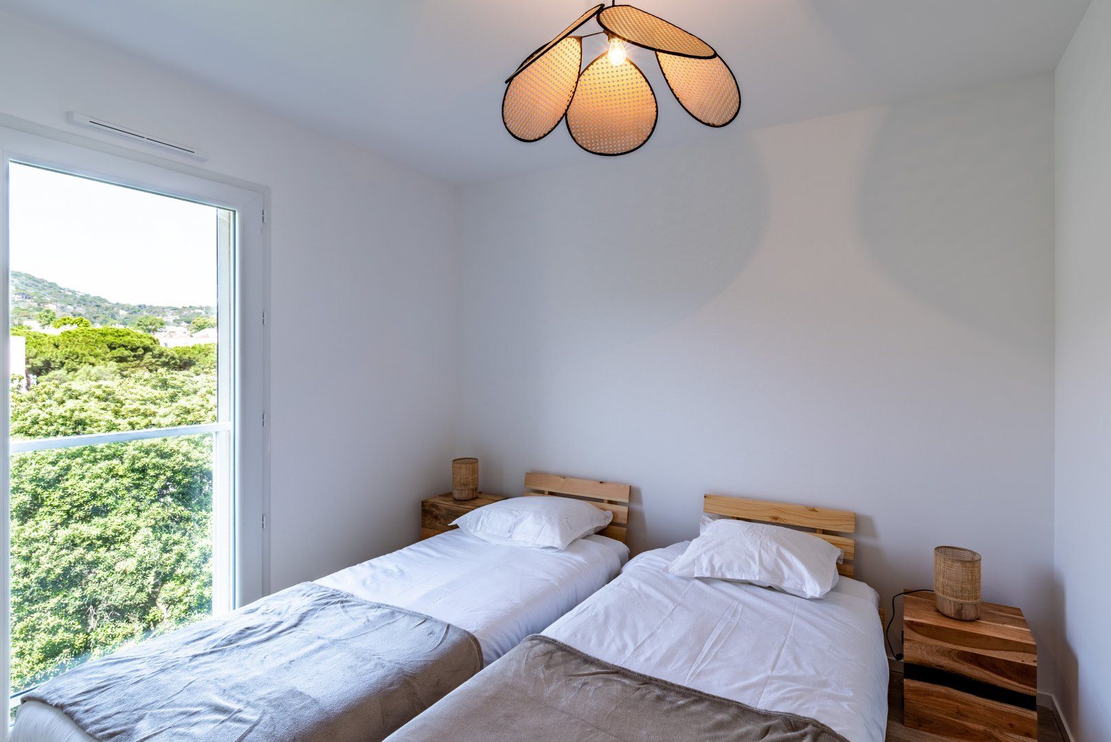 Nestled between the luscious hills of the lively town of Calvi, this lovely apartment is a wonderful choice for a family or friends getaway. Striking a harmonious balance between contemporary living and boho beachy charm, it exudes calm and comfort.