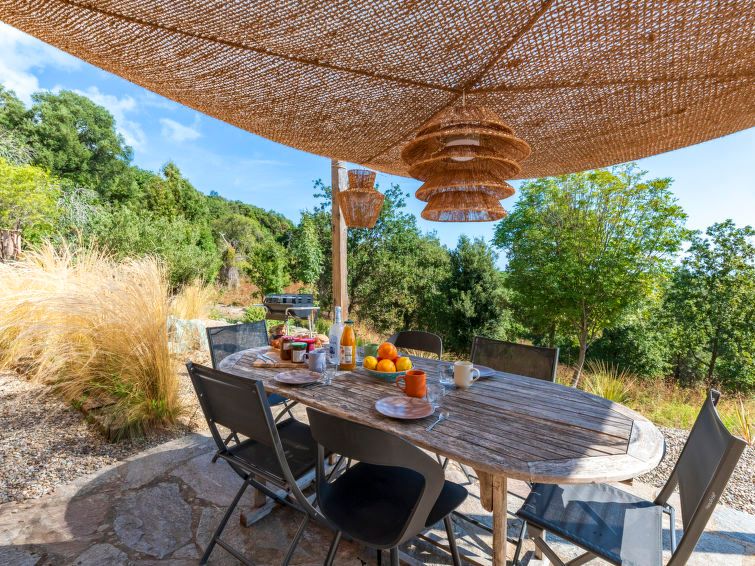 "Casa Murato", 4-room house 90 m2 on 2 levels. Comfortable and cosy furnishings: living/dining room with open-hearth fireplace, dining table and TV (flat screen), air conditioning. Exit to the garden, to the terrace. 2 rooms, each room with 1 french bed (160 cm, length 200 cm). Kitchen (oven, dishwasher, 4 gas rings, toaster, kettle, microwave, electric coffee machine).