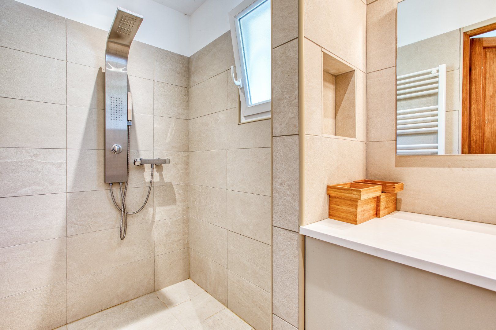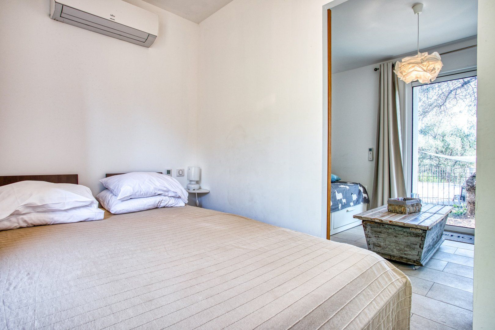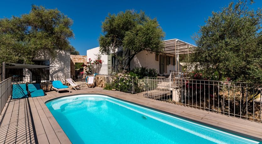 Consisting of four bedrooms spread across two separate apartments, the space is united by a flowering garden and swimming pool – perfect for relaxing and savouring the serenity of this unique location. There are also several terraces and shady spots for lounging, reading and enjoying glasses of wine as the sun sets. And for those evenings when you want to sit under the stars, the barbecue and dining area welcome you to experience the true magic of outdoor living.