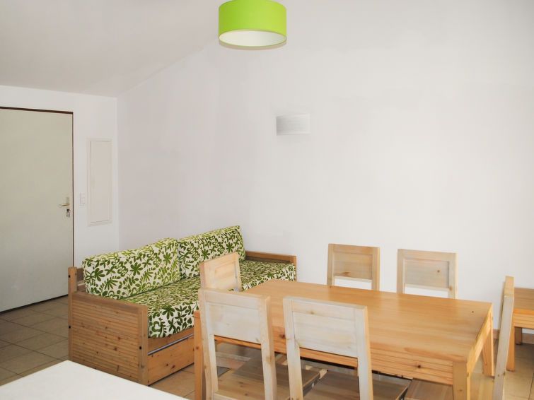 "Résidence Odalys Référence San Martinu", 4-room terraced house 52 m2. Practical furnishings: living/sleeping room with 1 pull-out bed, 1 sleeping facility, dining table, TV, electric heating and air conditioning. 2 rooms, each room with 1 french bed. 1 room with 2 beds. Kitchenette (dishwasher, 4 ceramic glass hob hotplates, microwave, electric coffee machine).