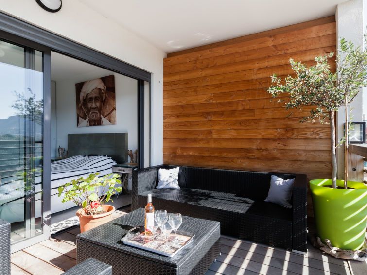 2-room apartment 41 m2 on 2nd floor. Comfortable and cosy furnishings: entrance hall. Living/dining room with TV (flat screen). Exit to the terrace. 1 room with 1 french bed (140 cm, length 200 cm). Exit to the terrace. Kitchenette (2 hot plates, dishwasher, electric coffee machine, combination microwave).