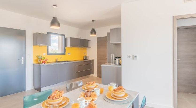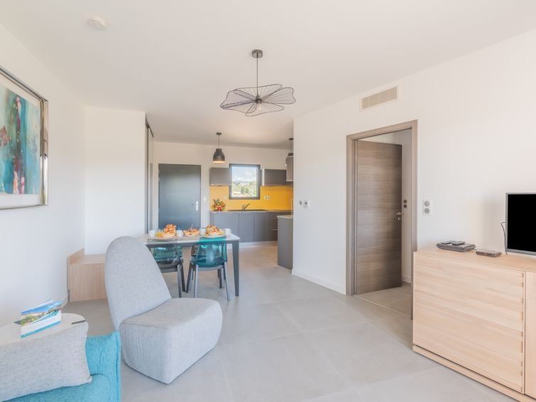 2-room apartment 51 m2 on 4th floor. Very beautiful and modern furnishings: living/dining room with 1 sofabed (140 cm, length 190 cm), TV (flat screen). Exit to the terrace. 1 room with 1 french bed (160 cm, length 200 cm). Open kitchen (oven, dishwasher, 3 induction hot plates, toaster, kettle, microwave, freezer, electric coffee machine).