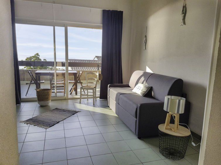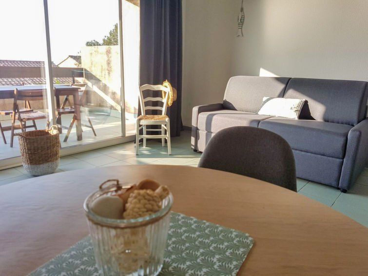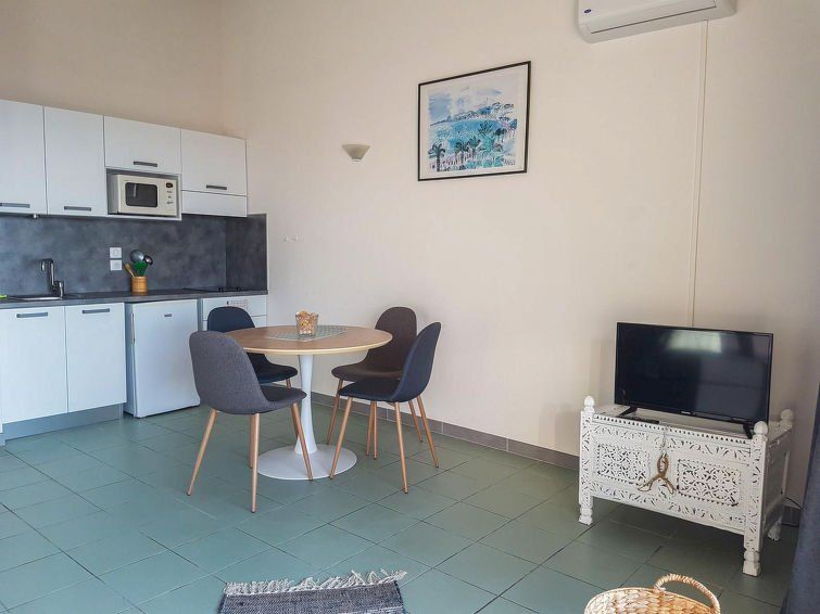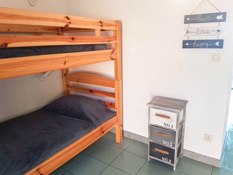 "Studio Cabine", 1-room studio 36 m2. Object suitable for 2 adults + 2 children. Simple and comfortable furnishings: living/sleeping room with 1 double sofabed (140 cm, length 190 cm), dining table and TV (flat screen), air conditioning. Exit to the terrace. Sleeping alcove with 1 x 2 bunk beds (90 cm, length 190 cm).