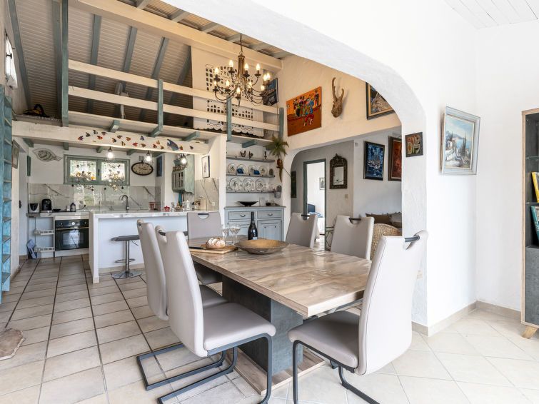 House as in the photos, very pleasant to live in and well equipped, but only 1 air-conditioned bedroom, 2 with ceiling fan, and no small beach umbrellas. Very quiet area of small individual houses, plus small hotel with swimming pool, restaurant and takeaway pizzas. Shops and other restaurants 10-15 min by car. Access to the practically private beach in 3 min on foot. Too bad the sand is not fine. Quite a few fish to see while snorkeling. Nice beach bar.