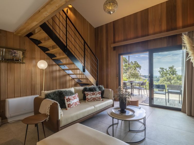"Caseddu D'Arasu", 3-room chalet 80 m2. Object suitable for 4 adults + 1 child. Comfortable and cosy furnishings: living/dining room with dining table and TV (flat screen). Exit to the terrace. 1 room with 1 french bed (160 cm, length 200 cm), shower and TV (flat screen). Exit to the terrace.