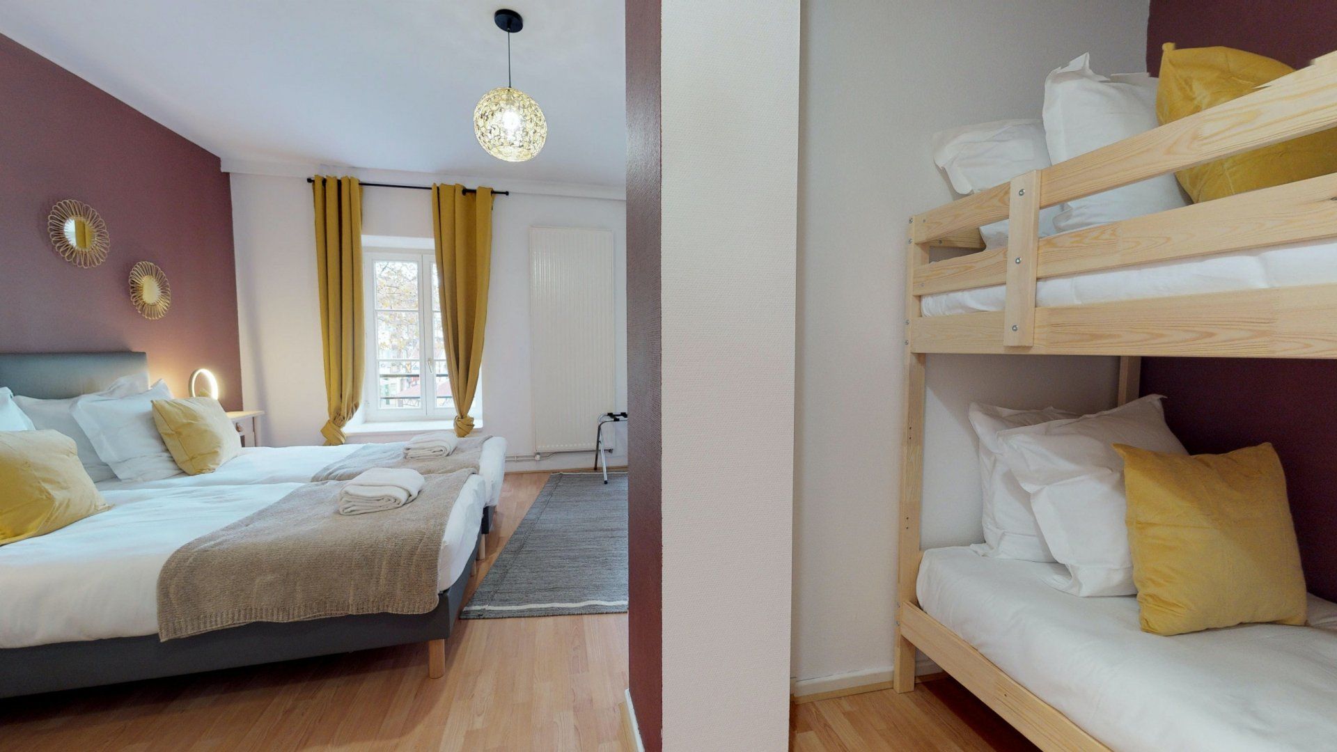 Perched in the heart of historic Colmar, this convenient apartment offers convenience and practicality to a group of guests looking to socialise and soak up the city in harmony. With an open-concept kitchen, dining and living area, the whole crew can come together over homemade meals or simple aperitifs with ample room to relax – don't forget to pick up a few bottles of your preferred Alsatian wine while you're out and about. Oh, and some cheese to go with it.