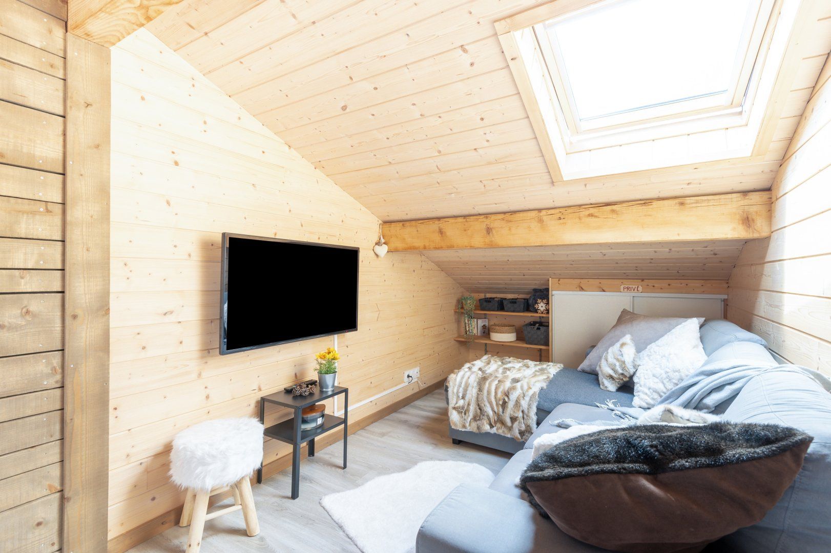 So constant is this home’s beauty, you can visit summer or winter and be bowled over by the views on offer from the balcony. In winter, when the Vosges Massif is capped in white and the snow lies in wait at the La Bresse-Hohneck ski resort, you can wrap up warm and enjoy a steaming cup of cacao as you gaze out over the blanketed town below. And it’s even more beautiful at sunset, when the orange glow of lights bathes it all in a fairytale glow. Although some of the winter wonderland atmosphere might evaporate as the warmer weather starts to melt the snow, the vibrant green beauty it leaves in its wake is still a sight to behold.