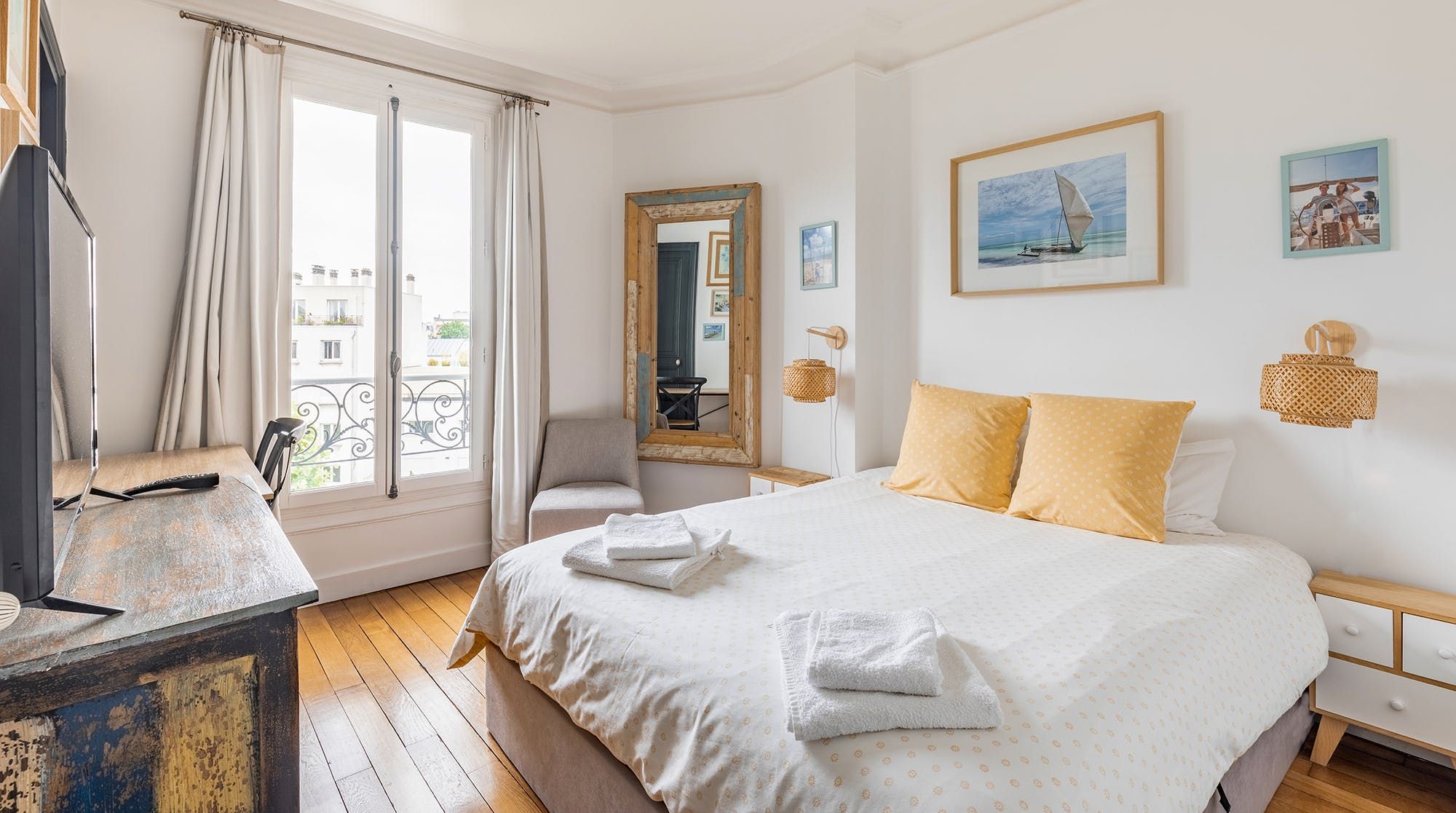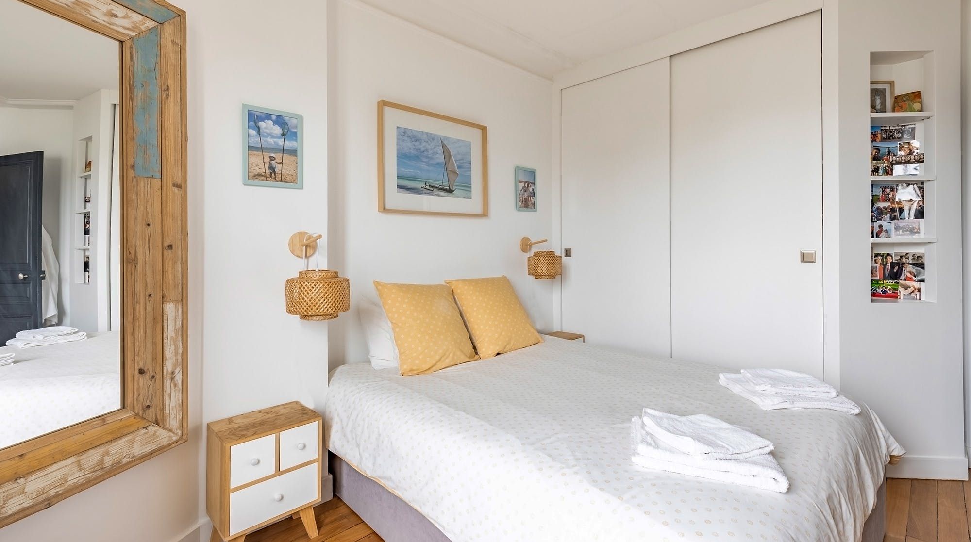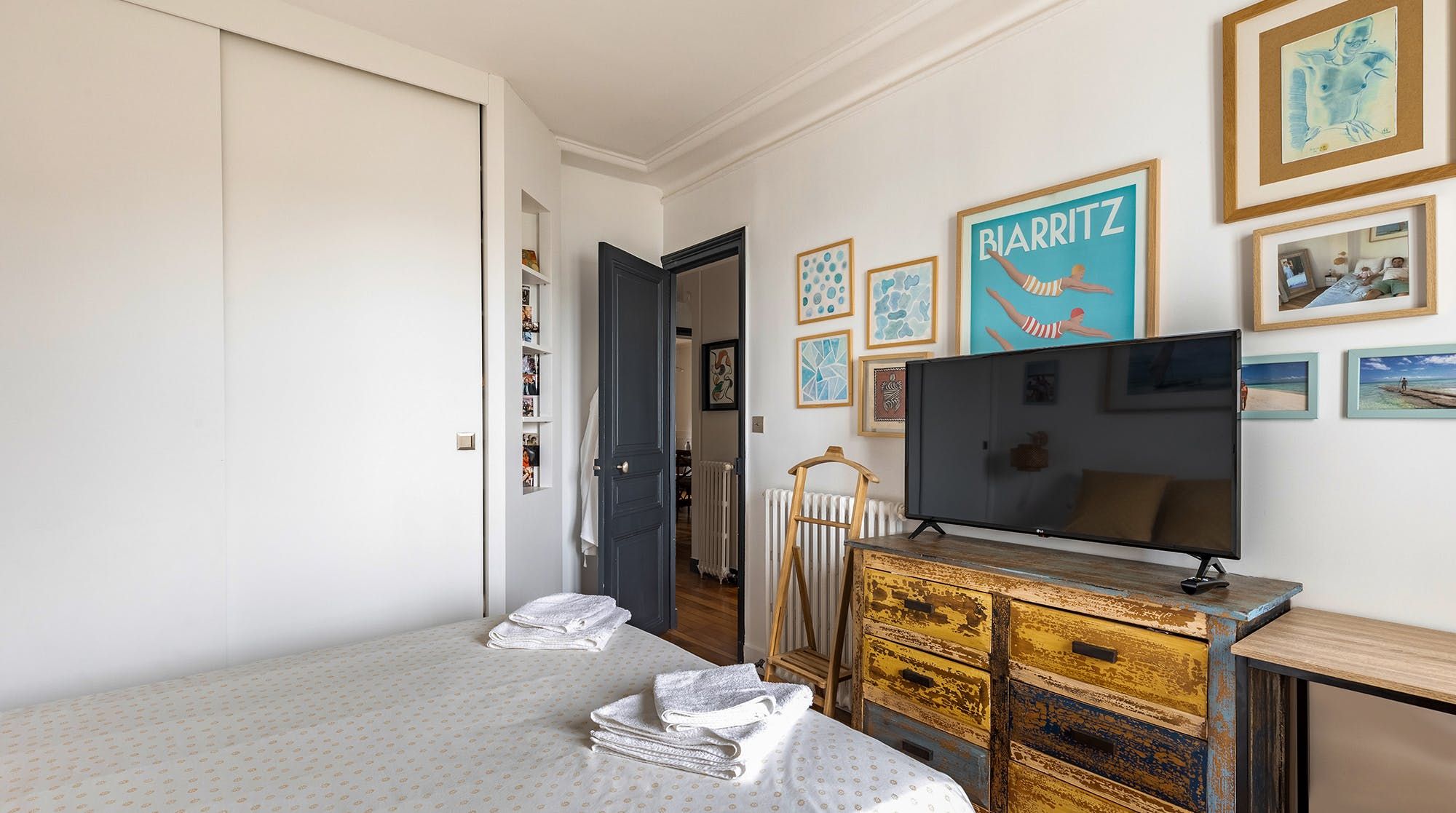 You’ll also have an elegant dining table, perfect for those romantic candlelight suppers you can easily rustle up in the well-equipped kitchen. For a night of restful sleep head over to the comfy bedroom, with its soft bed and lovely artworks on the walls. You’ll wake up bright-eyed and restored, ready for another day of Parisian magic.
