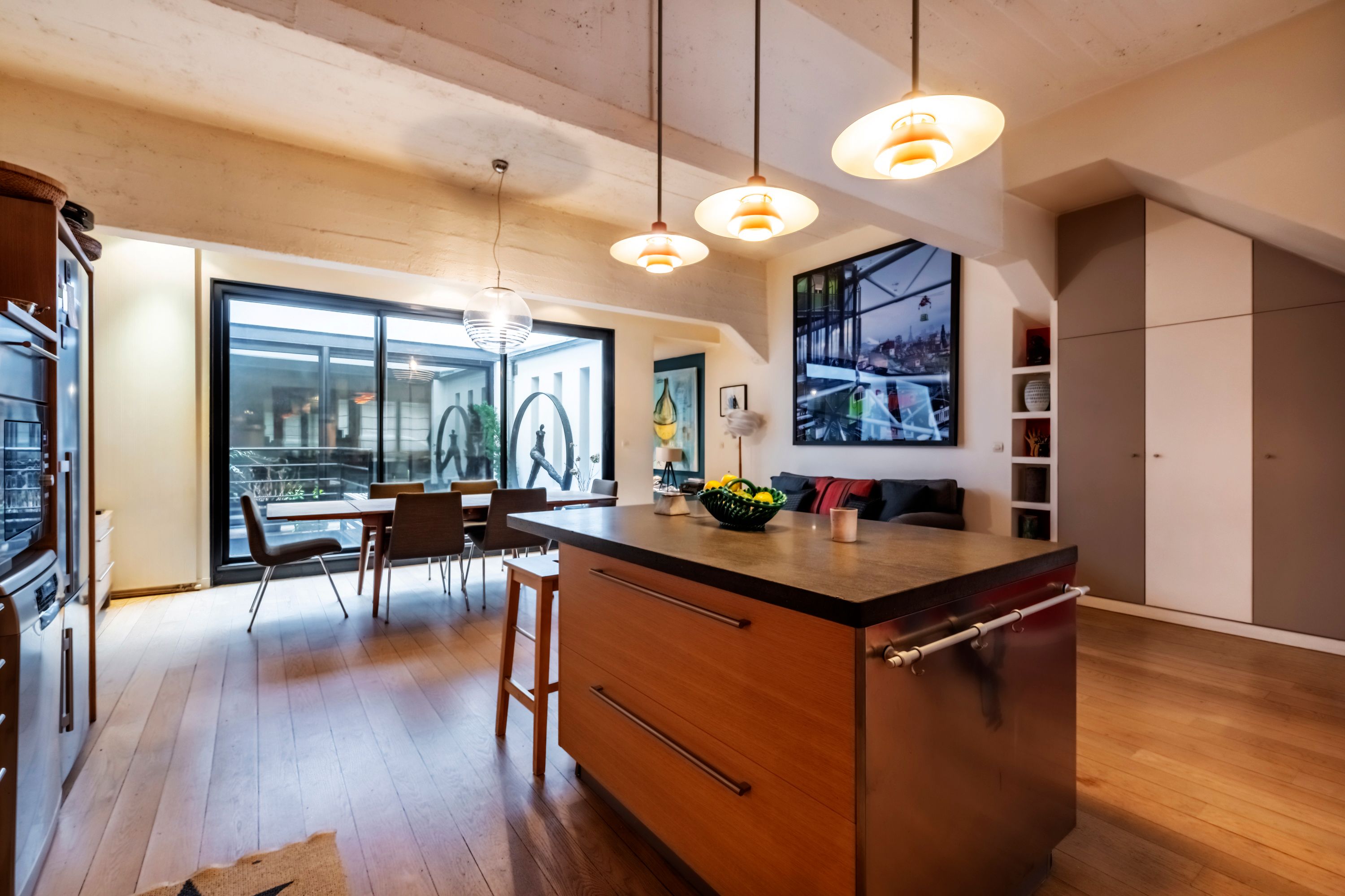 This elegant home can be found in the heart of Boulogne Billancourt. It’s away from the hustle and bustle of the city centre, but you can easily hop on the metro to see the sights of Paris or to unwind in nearby Bois de Boulogne. Your home manager will ensure that your stay is as comfortable and stress-free as can be – fresh pastries and baguettes will be delivered each morning, and you won't need to lift a finger thanks to daily housekeeping. There’s a delightful terrace that’s an ideal spot for enjoying sunset cocktails or dining alfresco. Perfect for large groups, this home has plenty of space for everyone to gather together, inside or out.