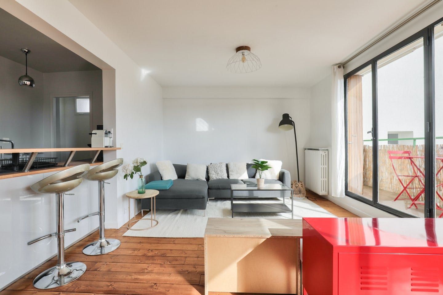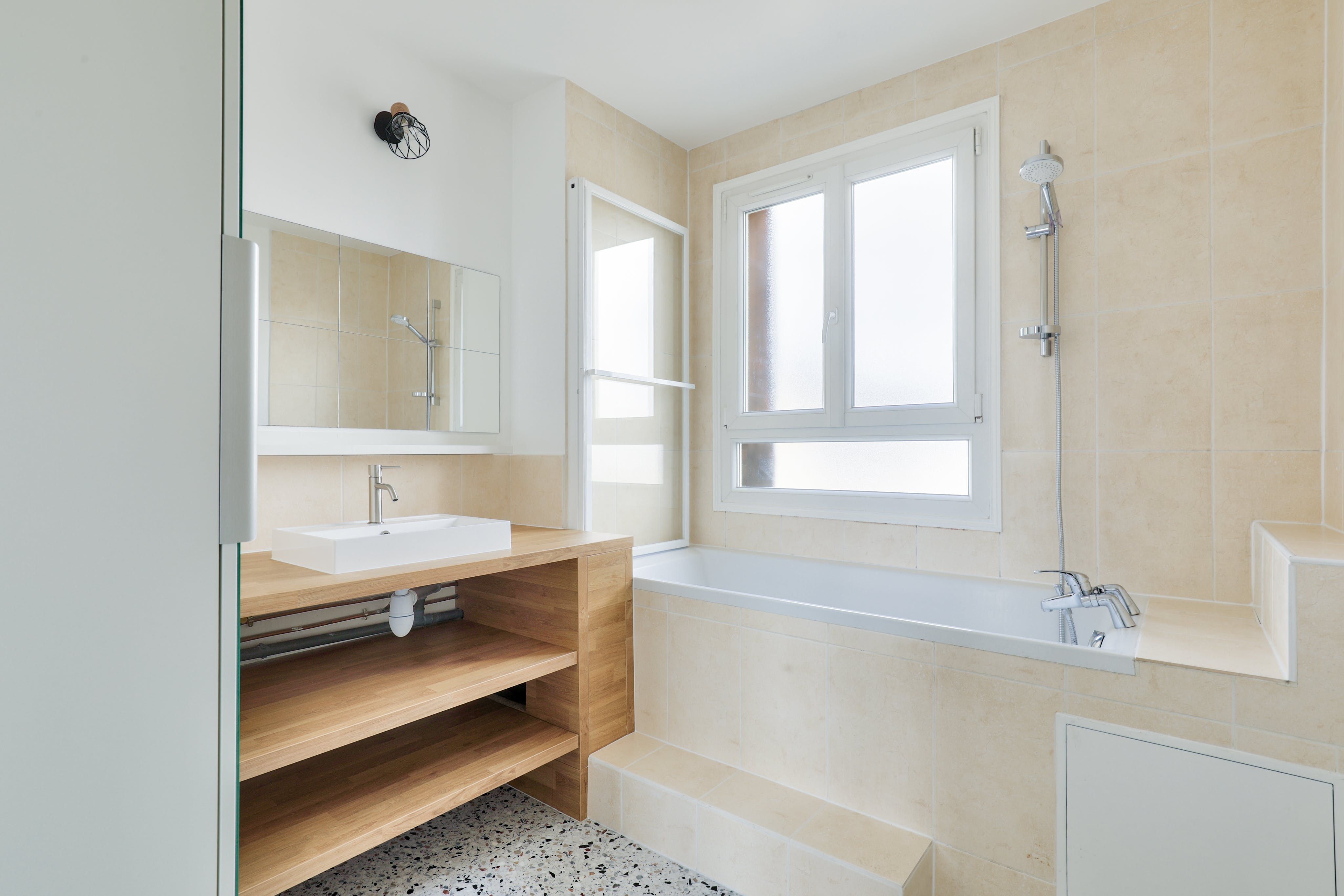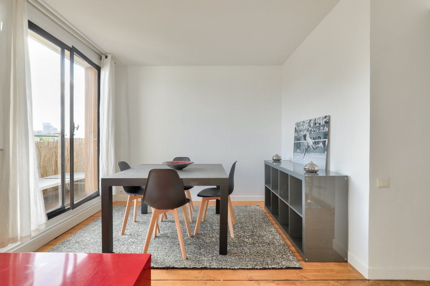 Located in Boulogne-Billancourt, this apartment is within walking distance of an array of eateries, shops and public transport. Marcel Sambat station on the Paris Métro Line 9 is around a five-minute walk, while the Eiffel Tower is a fifteen-minute drive and Chateau de Versailles is about twenty minutes in the car. Back at this modern apartment, French doors open up onto a narrow balcony with a table, chairs and sun loungers – the ideal spot for a glass of wine. Just one thing to note – there's a step up to the bath, so this place may not be suitable for those with mobility issues.
