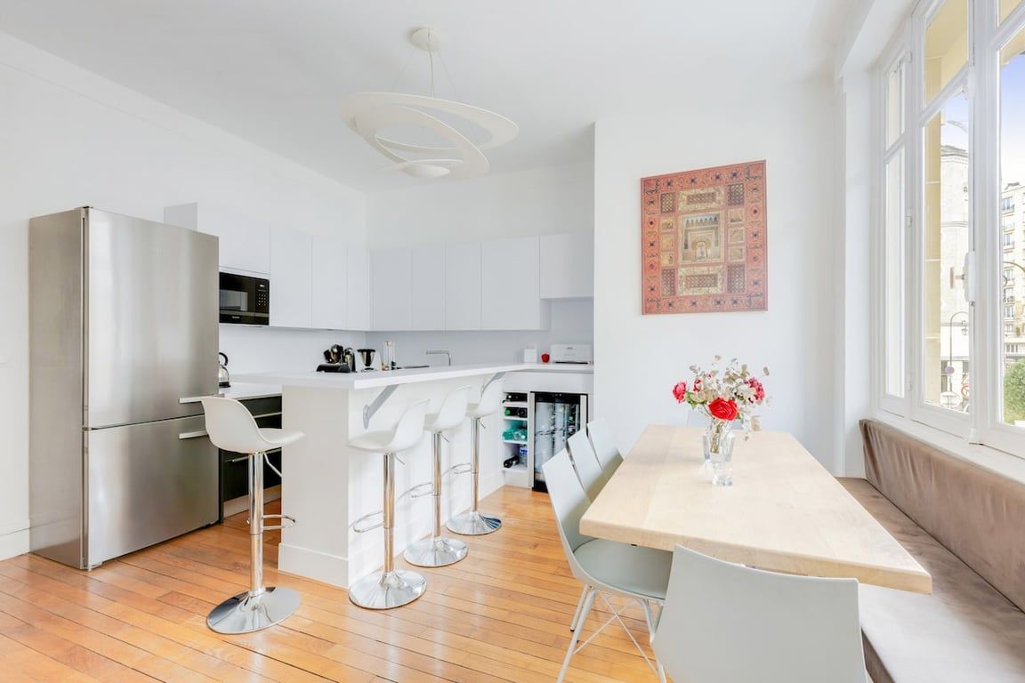 This homely and comfortable apartment is a great base for discovering Boulogne-Billancourt and beyond. Just moments from Marcel Sembat metro station, you’ll have easy access to central Paris while enjoying a more peaceful, residential setting. It's close to Parc des Princes, perfect for football fans, and it’s easy to reach the Eiffel Tower, Champs-Élysées, and other iconic sights. After a day out, dine in one of the area's classic Parisian restaurants, or cook up a meal in the large kitchen and dining area.