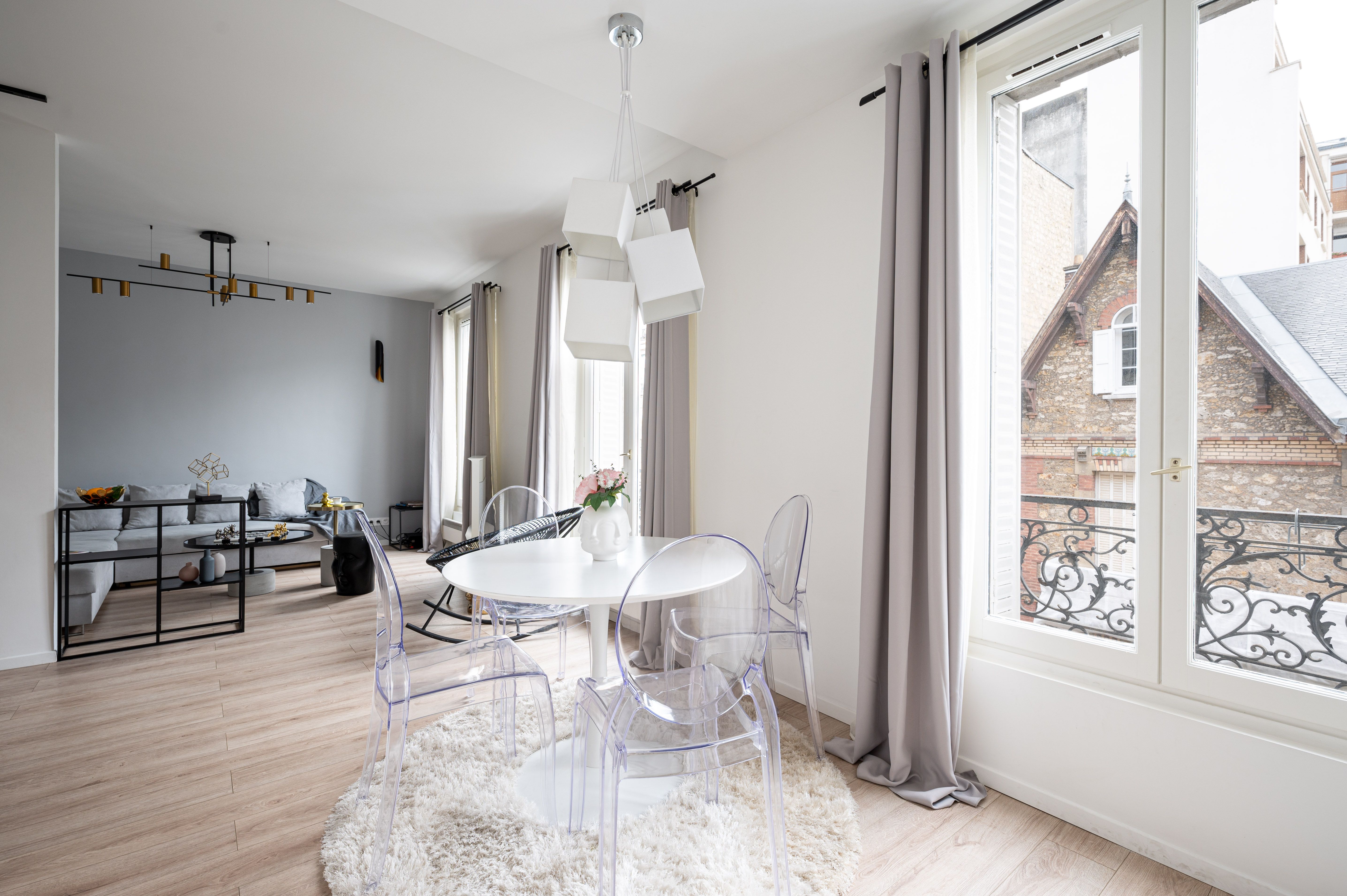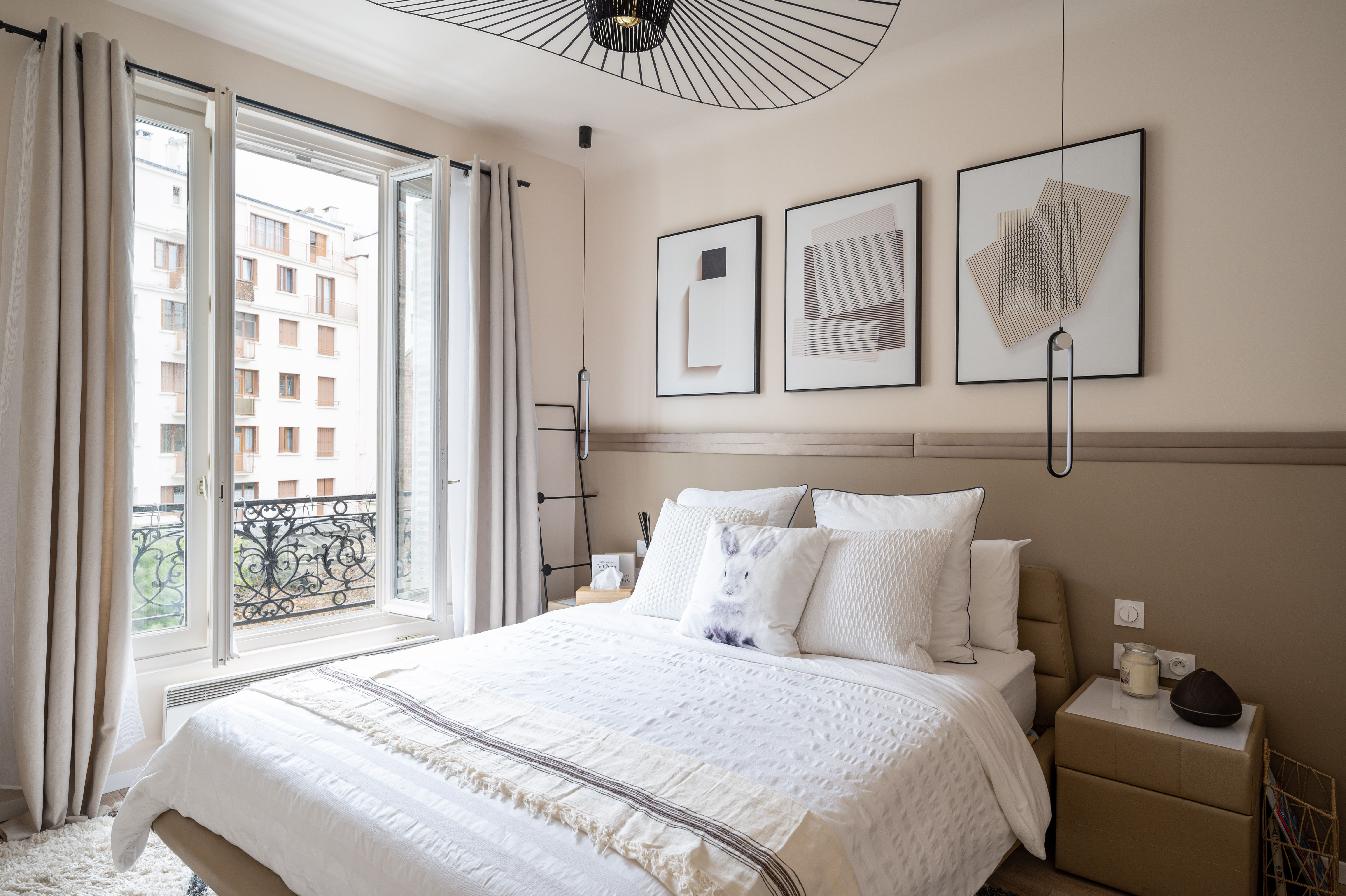 You'll find this apartment only a five-minute walk from the Paris Expo Porte de Versailles and its eponymous metro station. Restaurants, shops and the Seine are all a short walk away, but when you can zip to the Concorde and the Champs-Elysées in twenty minutes and the Effiel Tower in thirty via the metro, you'll have plenty of options for sightseeing. After a busy day exploring, pour yourself a glass of French wine, kick off your shoes and sprawl out on the cushy L-shaped sofa. Whether you're playing a game of chess or just watching The Queens Gambit on Netflix, it's hard not to feel relaxed in this bright and modern space. Business travellers can work remotely at the desk while home chefs whip up a meal in the well-stocked kitchen – there's something for everyone here. The interior leans towards contemporary – think Bluetooth speakers, rainfall showers and clean lines – but Juliet balconies on the French windows and the ivory fireplace add some quintessential Parisian charm. It's a perfect getaway in the City of Lights.