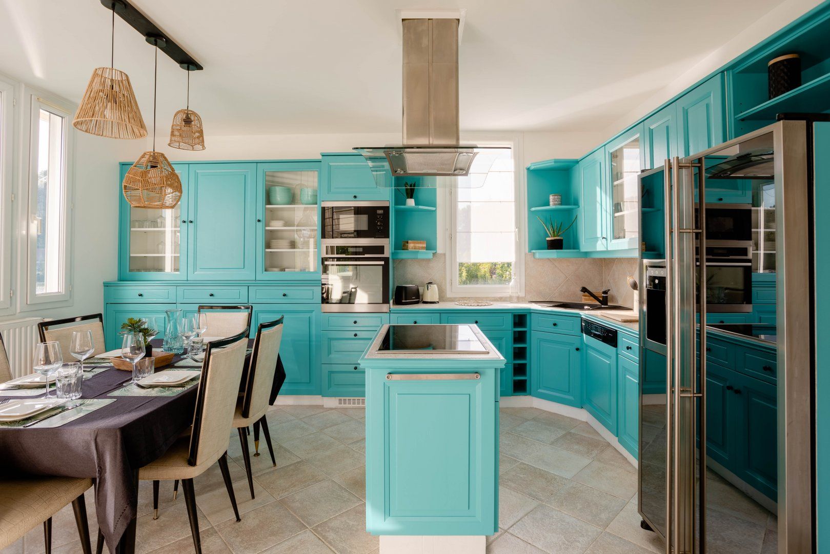 Elsewhere, a nautical-themed bar and turquoise kitchen evoke the ocean and long summer evenings surfing the perfect peeling right-handers down at Malibu.