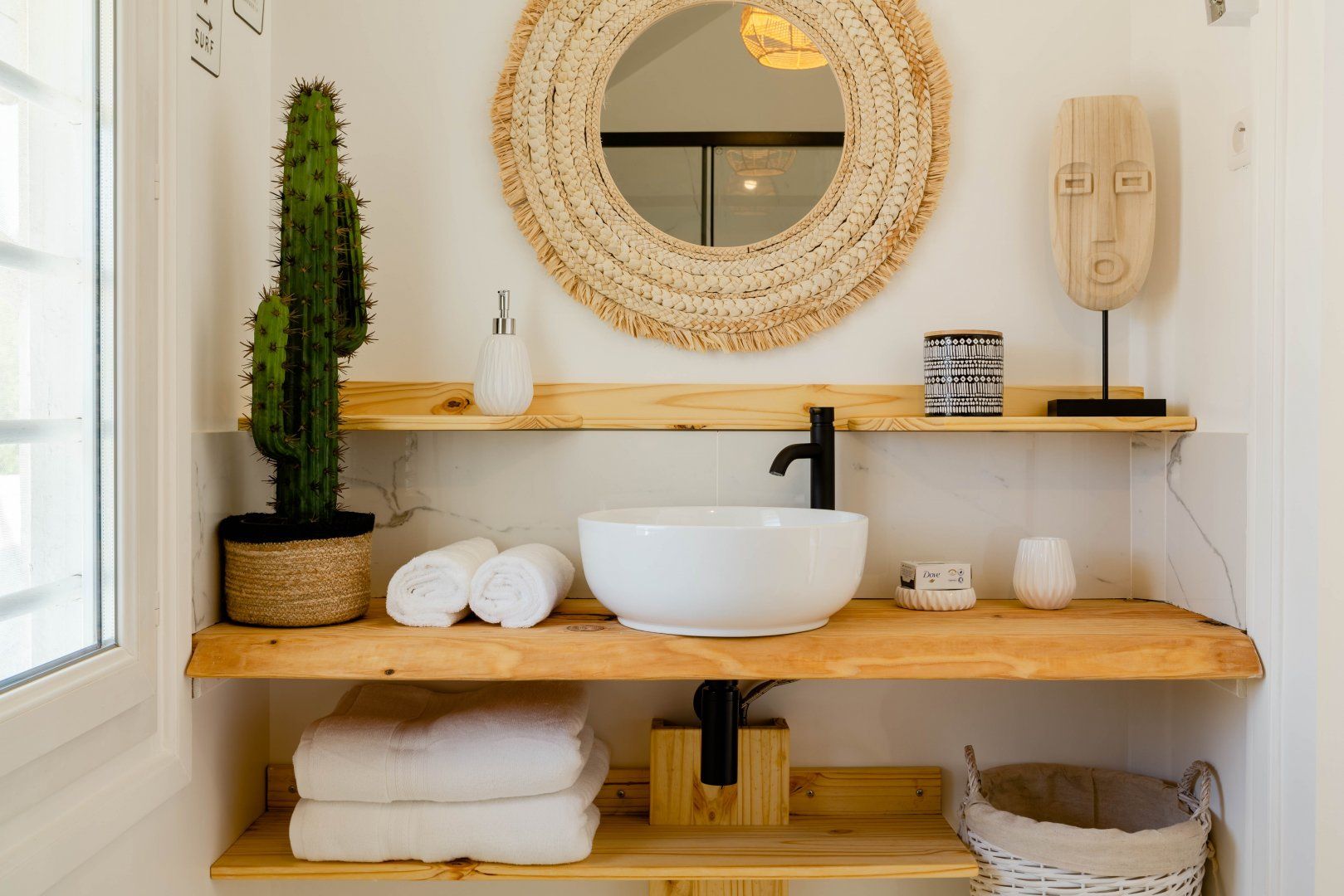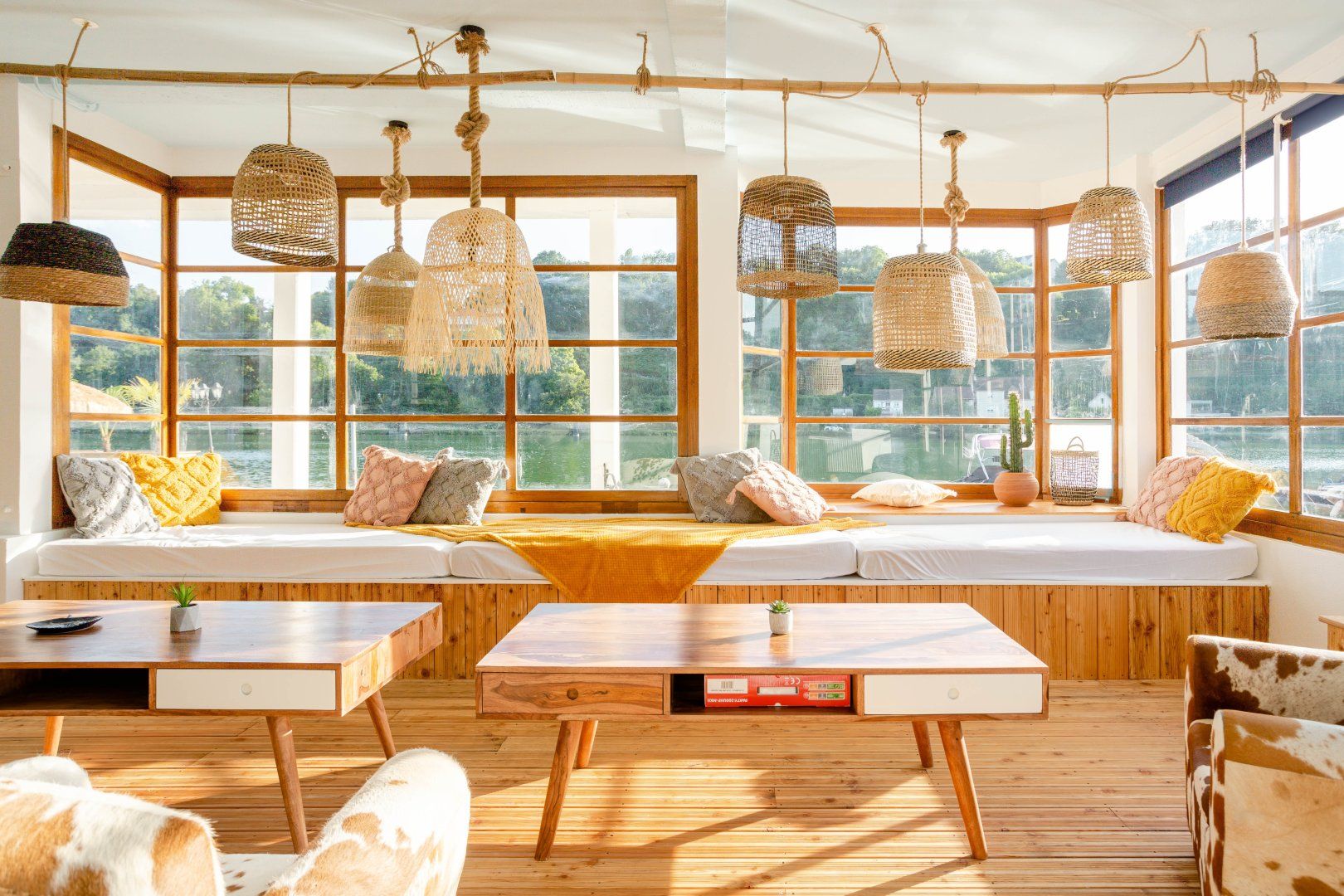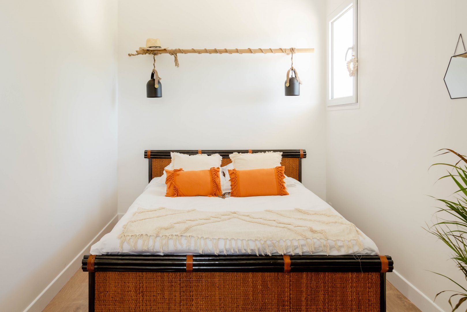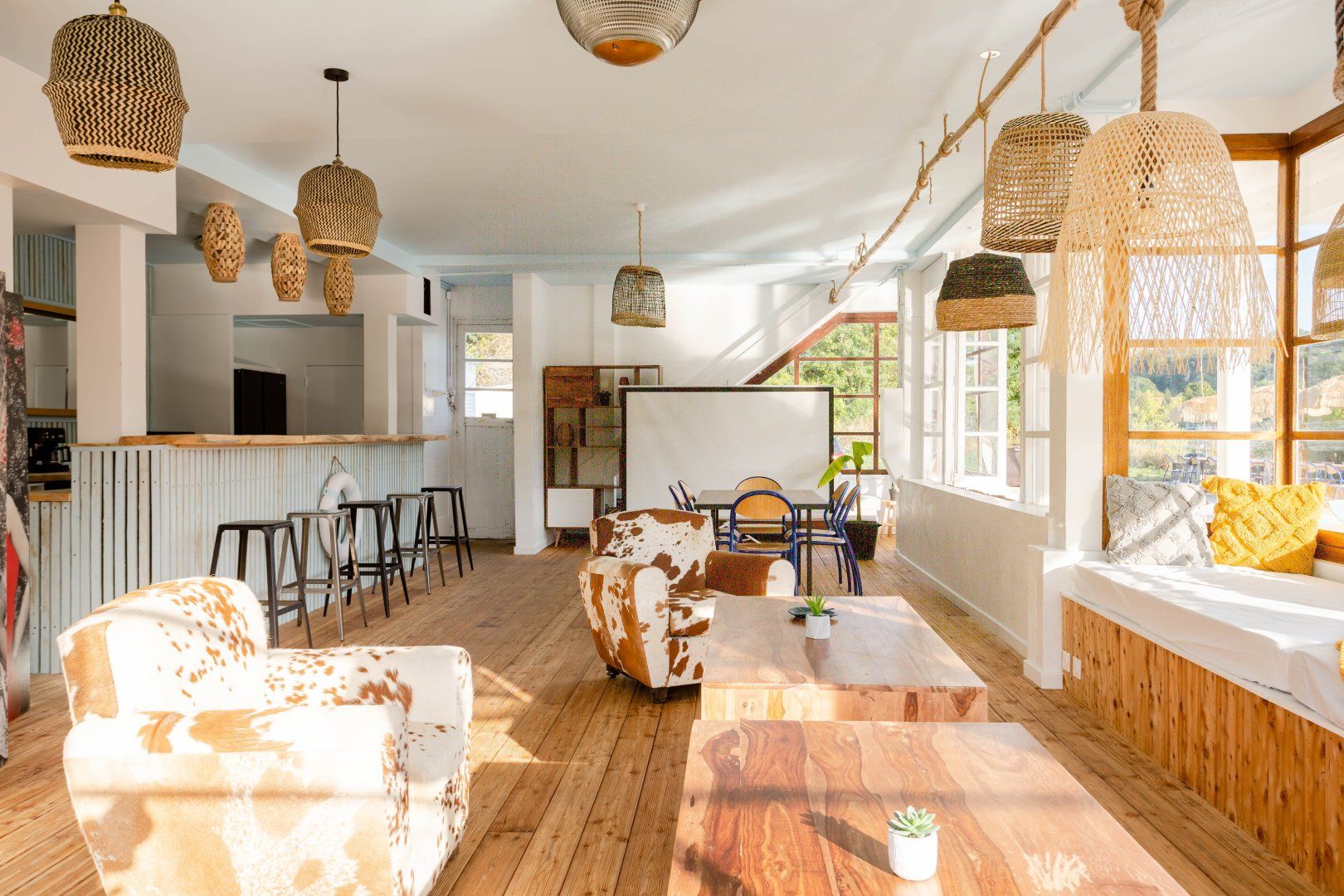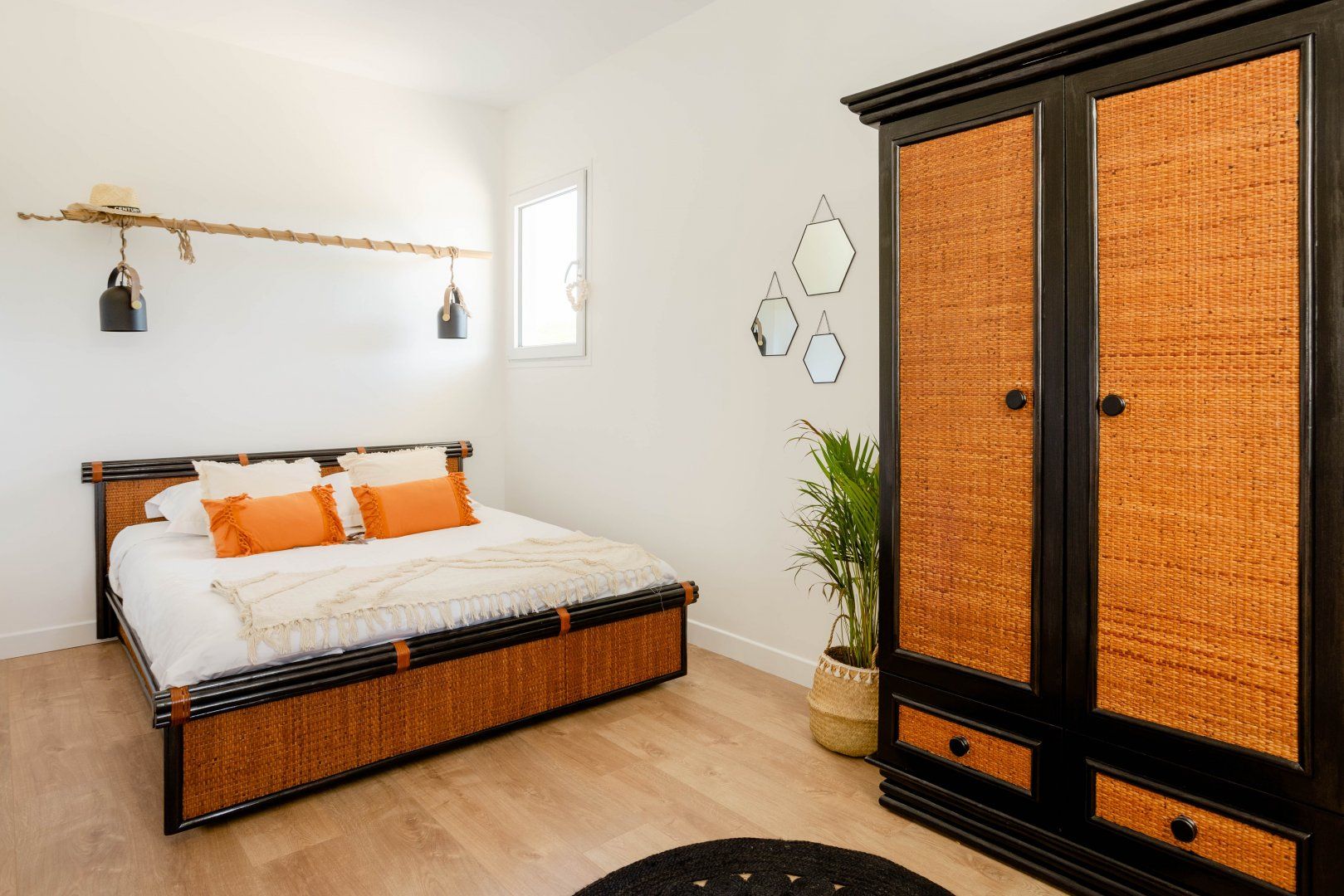 Extensive panes of glass, a gorgeous first-floor balcony and a south-facing aspect mean that the interior is flooded with light throughout the day. At the same time, jute rugs, a plethora of woven pendant lamps and cowhide armchairs lean into the California/frontier aesthetic.