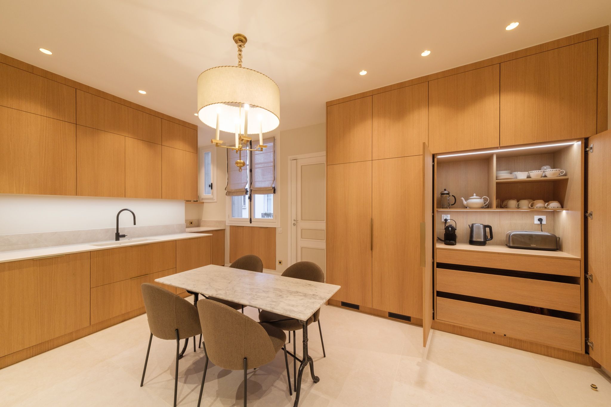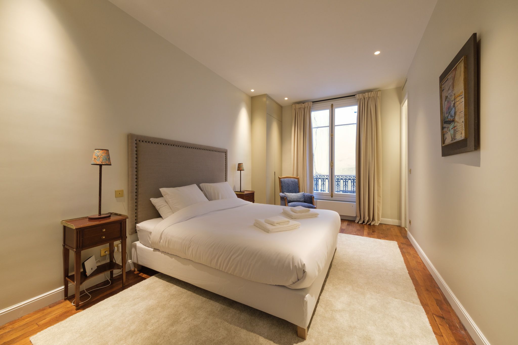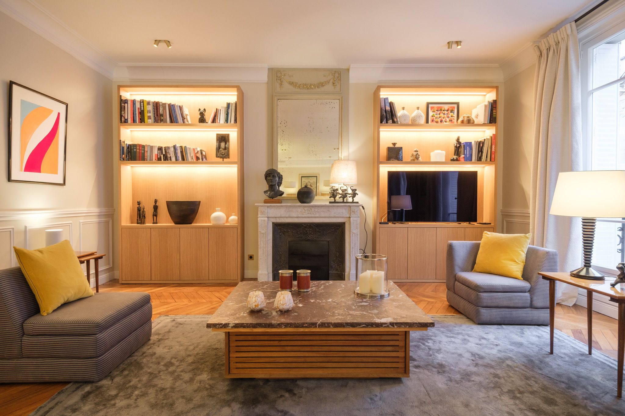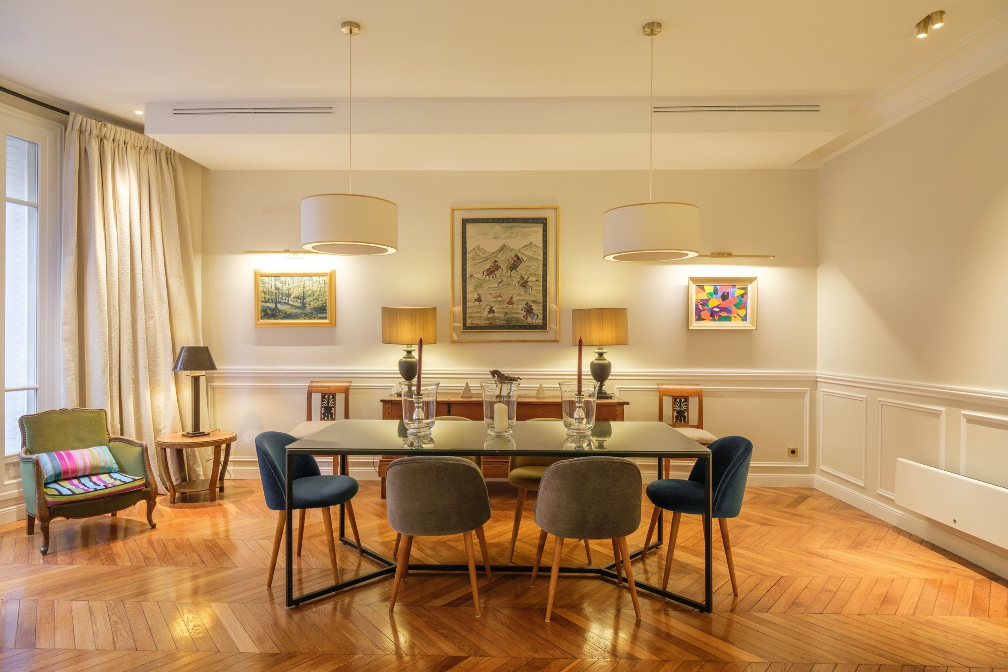 This elegant apartment is within walking distance of the Jardin d'Acclimatation, the Bois de Boulogne, Fondation Louis Vuitton and the Palais des Congres. There are plenty of restaurants in this sought-after district to sample too. Back at this apartment, there’s a large, bright living room with a dining area, and there’s also a table in the modern kitchen, both doubling up as a place to work if need be. This comfy home is ideal for guests on business trips or vacations.