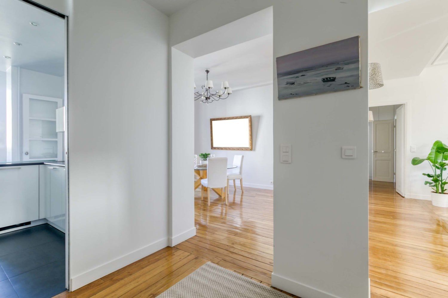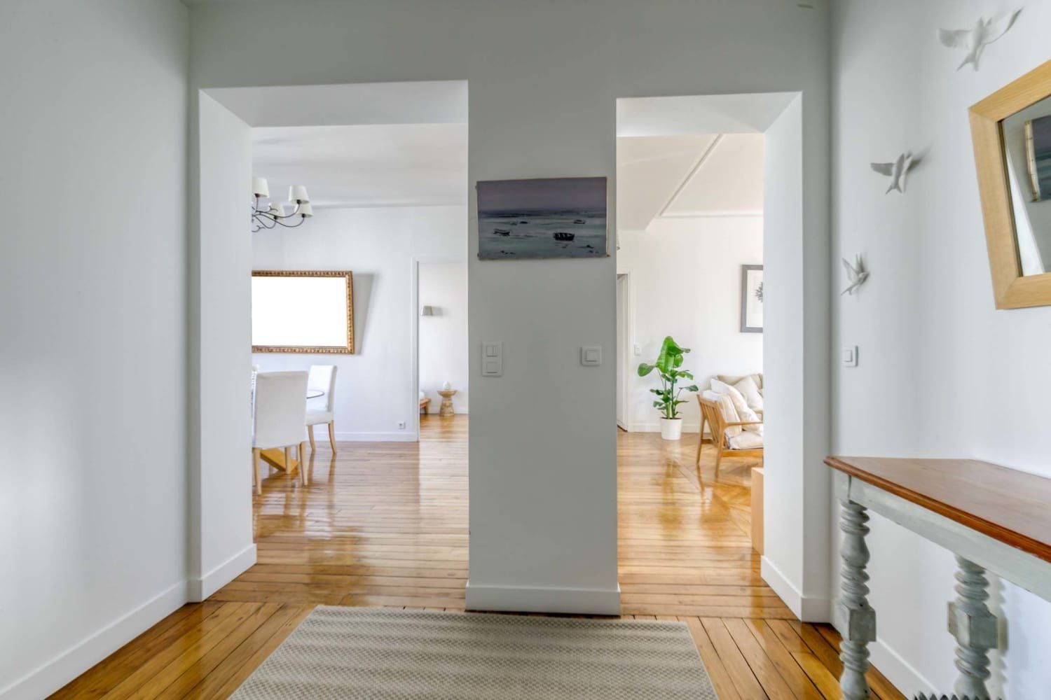 There’s a distinct air of Parisian elegance to this bright apartment, located in Paris’ residential Neuilly-sur-Seine neighbourhood. From its tall ceilings to its beautiful parquet floors and large French windows bathing the living area in light, you’ll feel right at home in this wonderfully curated space.