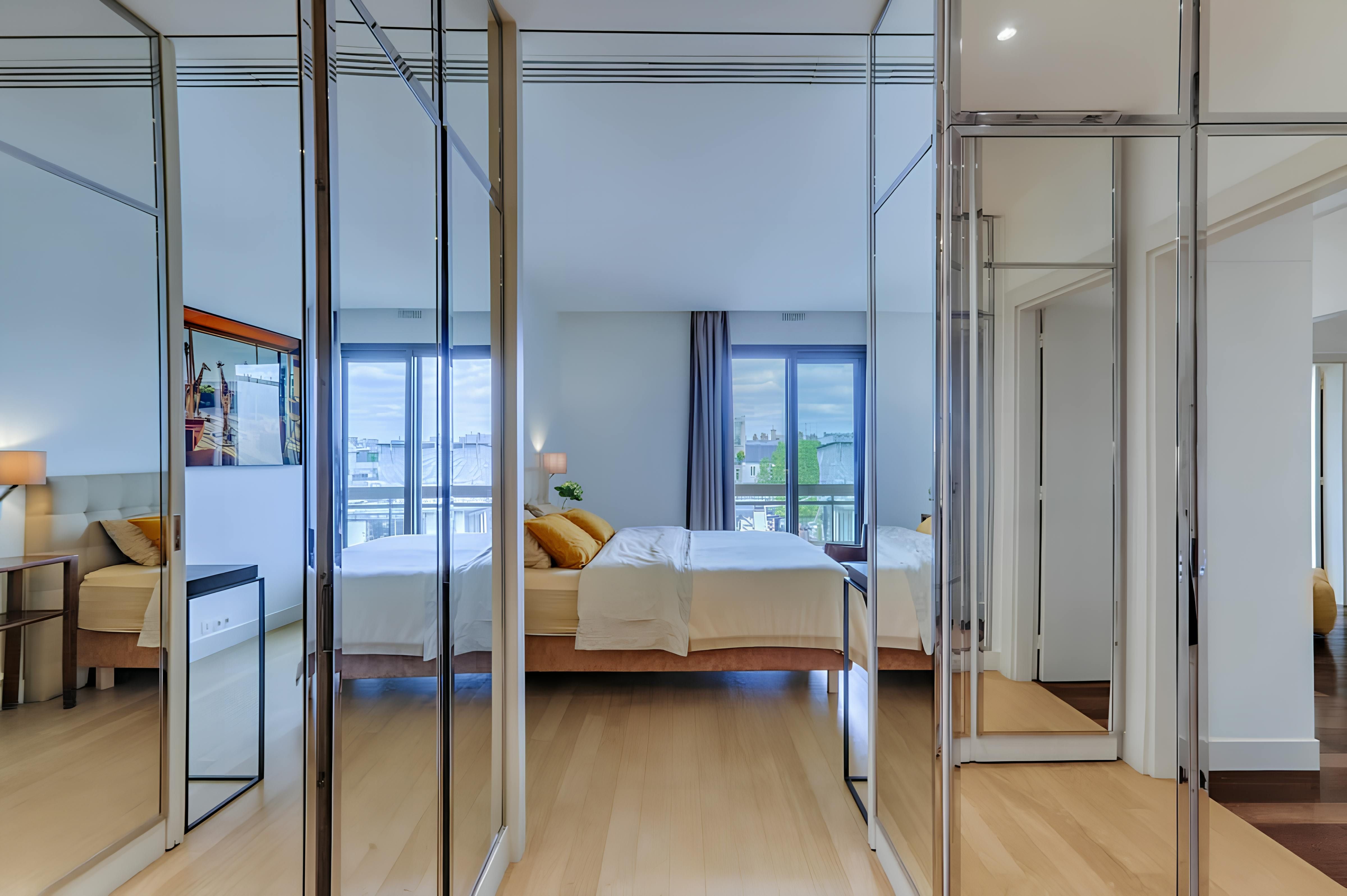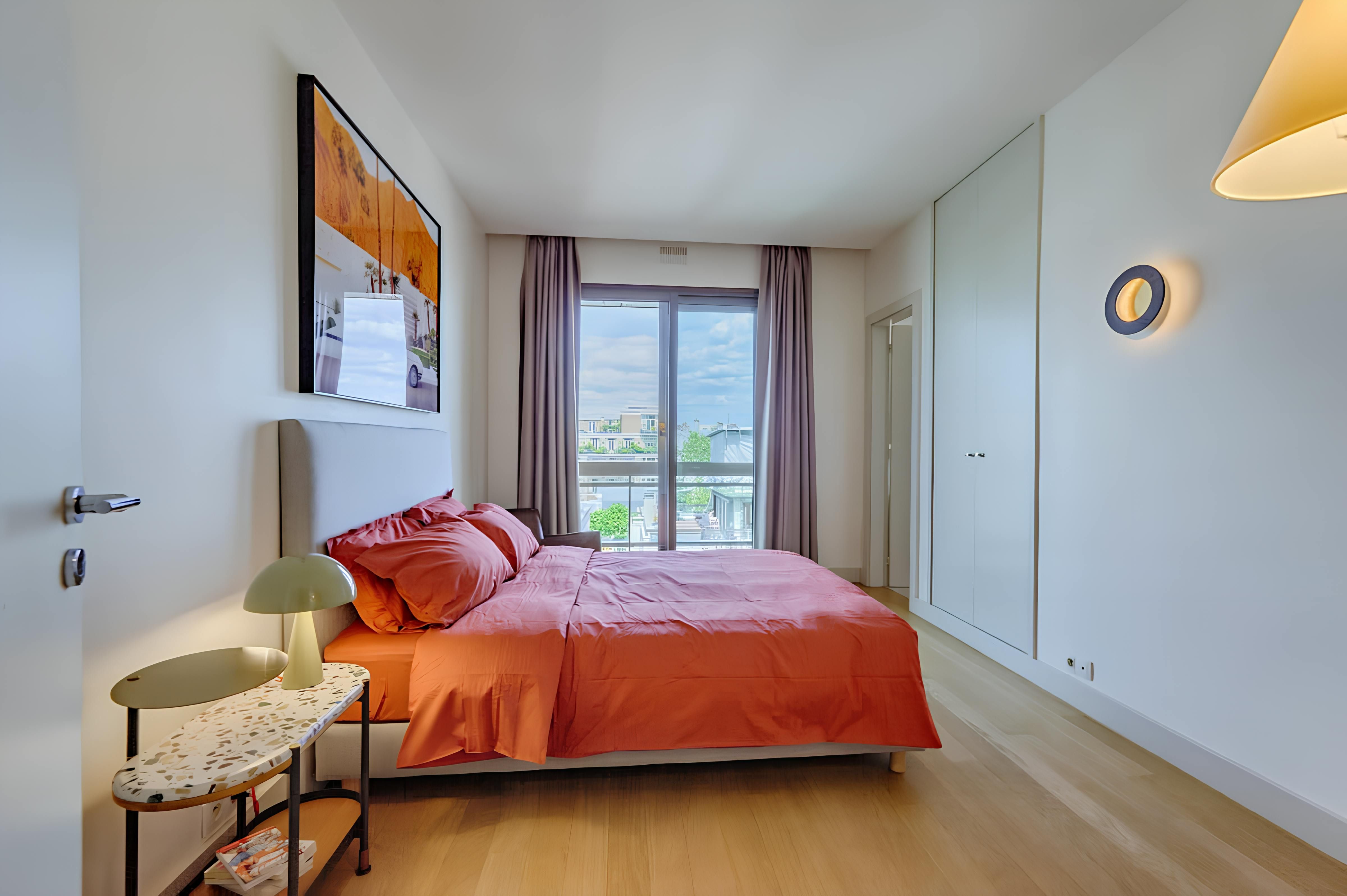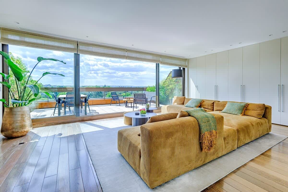 Looking for a quieter base just outside of Paris? Step forward this roomy two-storey apartment located in the upmarket neighbourhood of Neuilly-sur-Seine. With elegant cafés, bistros and the leafy Bois de Boulogne on your doorstep, it's easy to see why affluent Parisians lay down roots here. Excellent Metro and bus links make reaching central Paris simple. But you can just as easily admire the Eiffel Tower from your private terrace – the views are outstanding whatever the time of day. Inside, the layout suits two couples or friends, with two equally sized en-suite bedrooms on the lower level. While upstairs is all about socialising in the free-flowing living and dining setup.