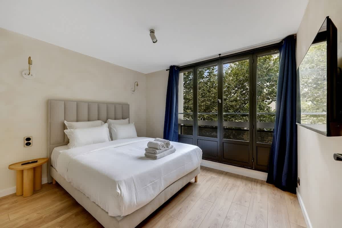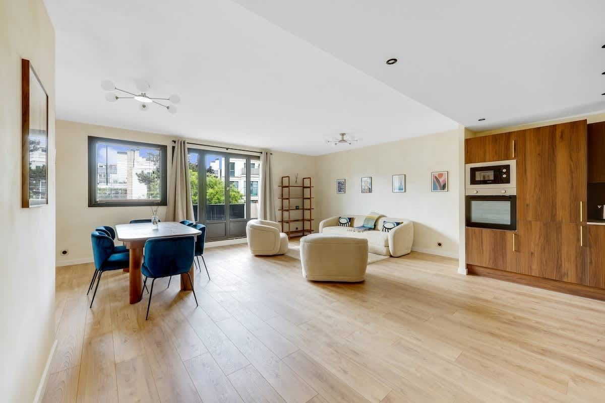 The upscale suburb of Neuilly-sur-Seine is one of the most affluent neighbourhoods in Paris – a well-heeled place to call home, where you’ll find elegant bistros and pretty parks, along with easy Metro links to the city. The apartment has two bedrooms and an additional sofa bed, so it’s well-equipped for a group getaway or family trip, while the modern kitchen is handy for home-cooked meals. Whether you’re in town for work or play, staying here is a good option if you want to be close to central Paris while sampling a more local slice of life.