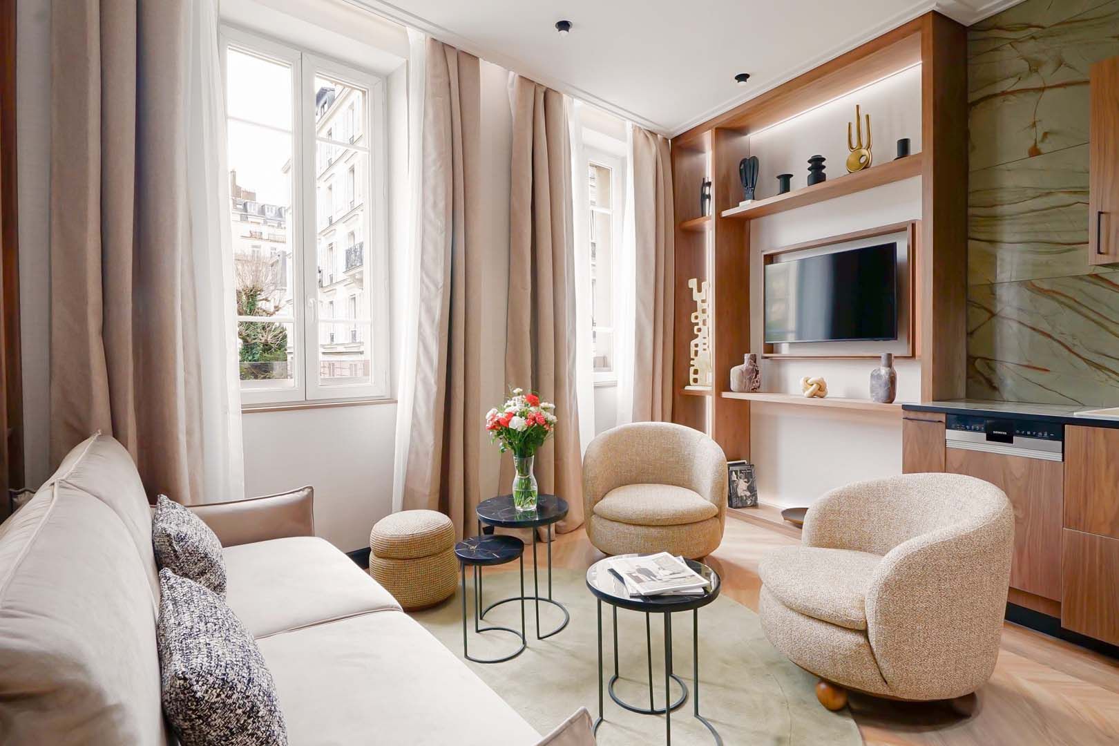 Just a short stroll from Bois du Boulogne, this apartment sets the tone for a refreshing city stay. Inside, you’ll find calm rooms, luxurious touches and all the essentials you could need to get you started. Your host is also on hand to help ensure your stay is extra special with a range of services – including breakfast deliveries and grocery baskets. It’s worth noting there is no private parking available here, but there are fantastic public transport links. Plus, you can walk to restaurants, cafes and iconic sights like the Arc de Triomphe.