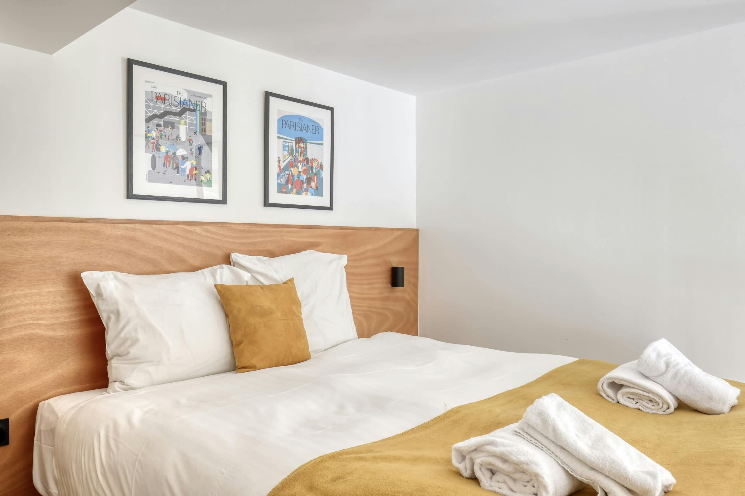 Tucked away in a peaceful private courtyard at the foot of Butte Montmartre, this apartment is perfect for a family. It’s bright and welcoming, with floor-to-ceiling windows and high ceilings. The courtyard garden is a tranquil space, ideal for alfresco breakfasts before busy days of sightseeing. You’ll be just 1 kilometre from the Moulin Rouge and Sacré-Coeur, through the winding streets of Montmartre. When you’re not exploring Paris, you’ll be glad to have a home-from-home like this – it’s attractive and comfortable, though bedroom two is semi-open to the living and dining space below.