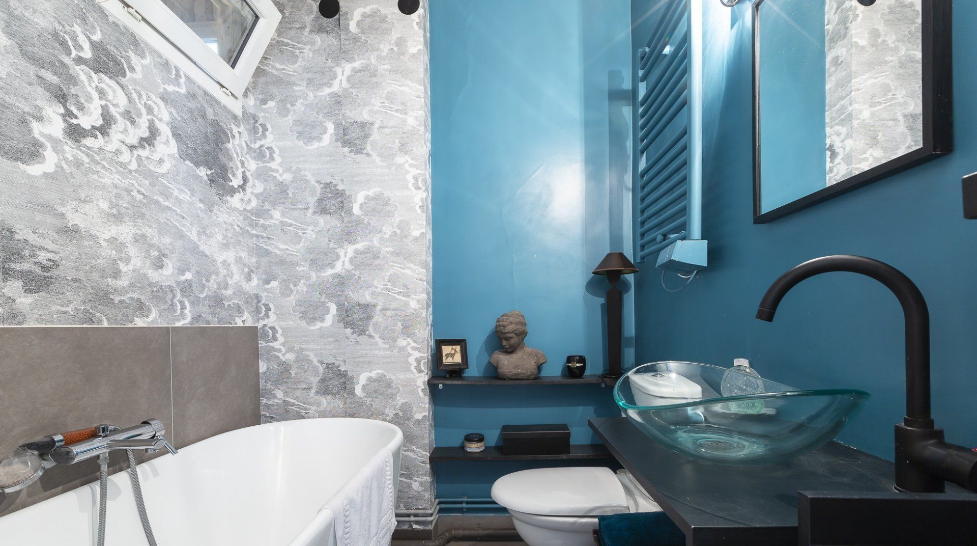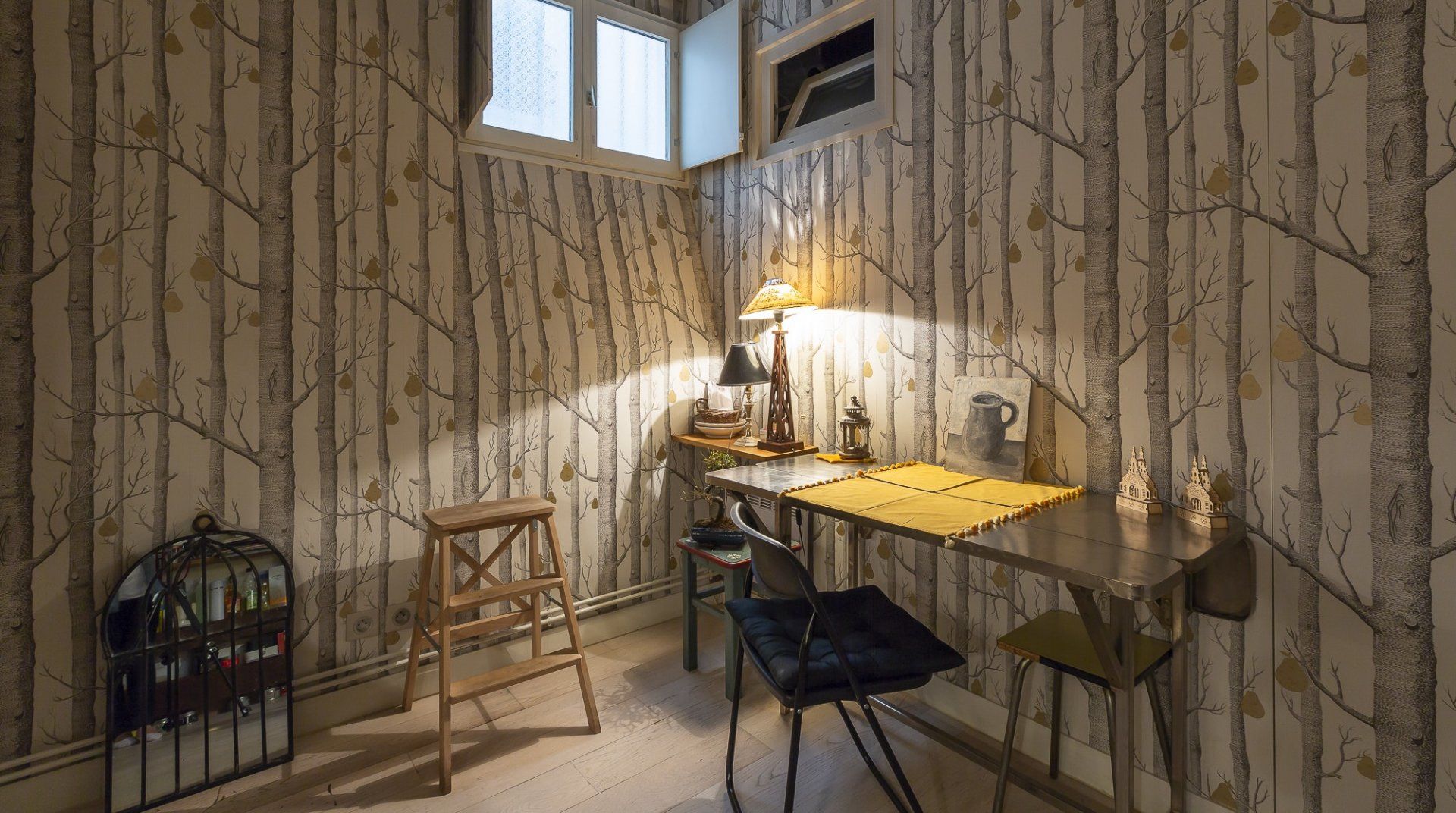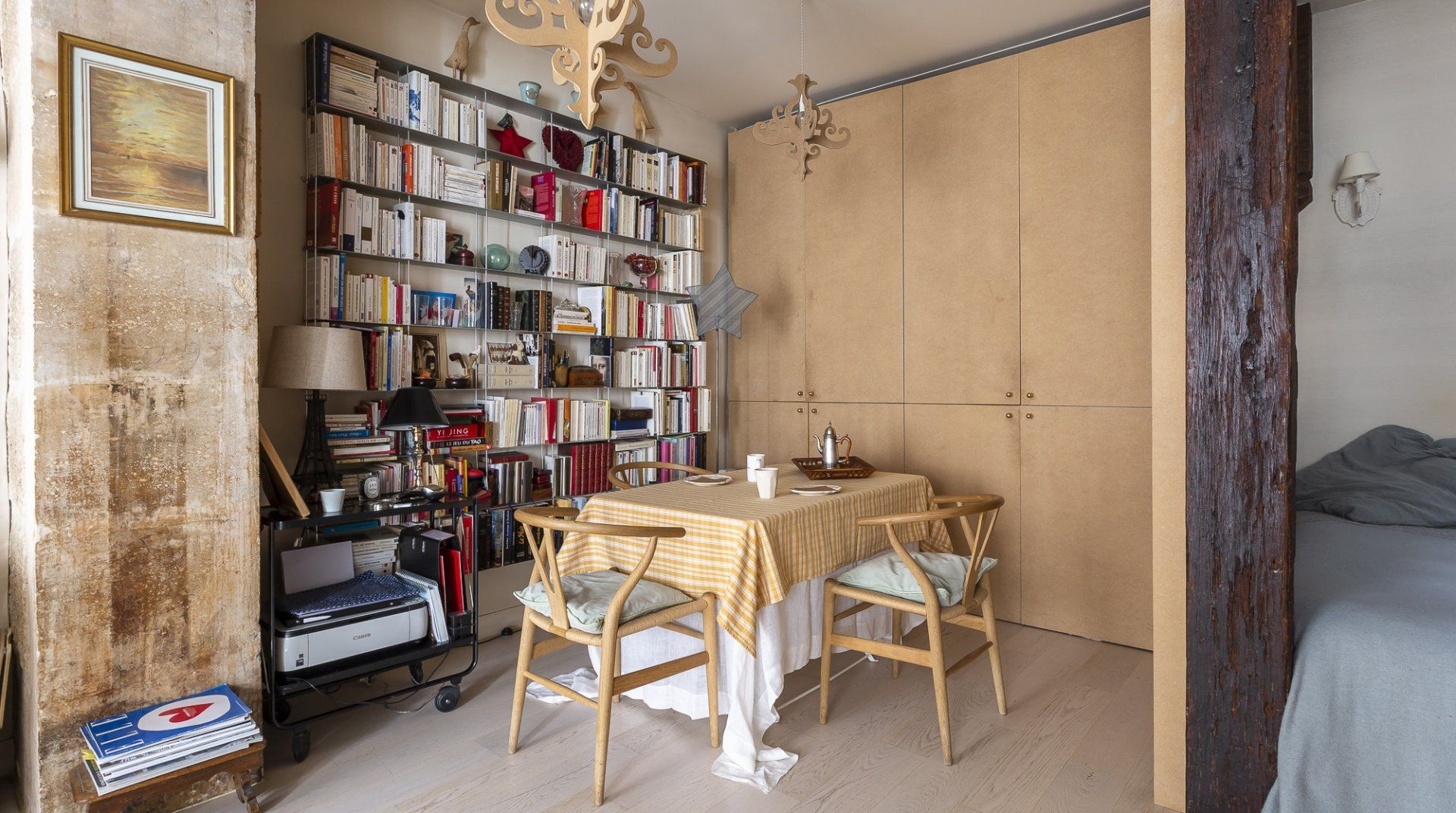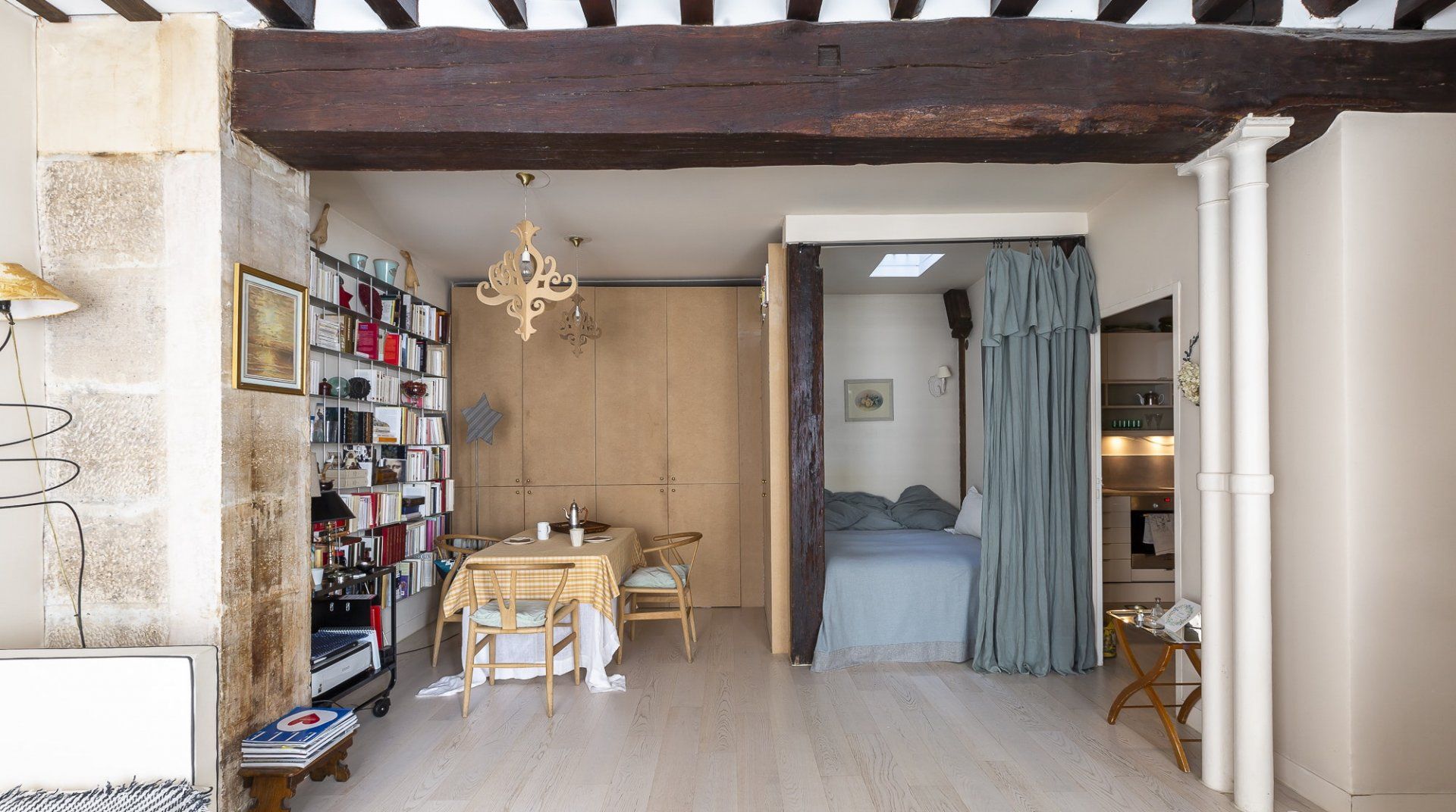Designed and decorated with Feng Shui principles in mind, this positively tranquil apartment puts everything in the right place. Evoking a feeling of peacefulness, stepping in to look around the decor you'll find a cosy living space juggling modern chic with rustic charm. On the one hand, we love the wood beams, low ceilings and exposed brick walls that make for a homely and warming ambience. And on the other, you'll notice the original touches, quirky ornaments and rows upon rows of literature and art books that create a bohemian styling around the apartment. Waking up in the small but mighty alcove bedroom will be a truly unique experience while penning your thoughts in the oh-so-charming desk space in the kitchen will also be a change to the morning routine. But we just love the artsy feel of the kitchen and its special spot to ponder, paint and sip coffee. Outside, walk to the Iron Lady in seventeen short minutes, and wander the green expanse of Les Invalides, less than half a mile away. With its very central location, you'll be able to explore the City of Love on foot, so if it's romanticism you're after inside and out, you've found it.
