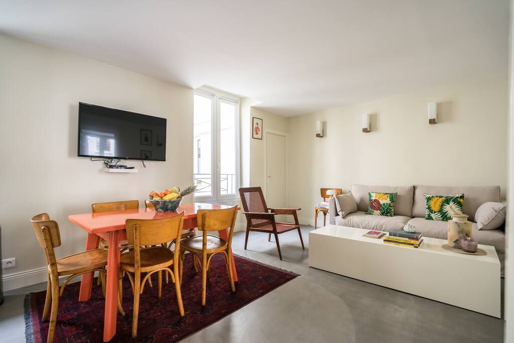 Perfect for small groups, this Parisian apartment is ideally placed for exploring the city. It's right around the corner from a diverse range of restaurants, bars, and music venues, and walking distance to Paris highlights like the Musée National Picasso-Paris and Le Marais. There's also a metro stop a few minutes' walk away to whisk you across the rest of the city. Inside, you'll find a full kitchen for preparing hearty breakfasts before a day on your feet, a dining table that doubles up nicely as a desk, and a sofa bed for two.
