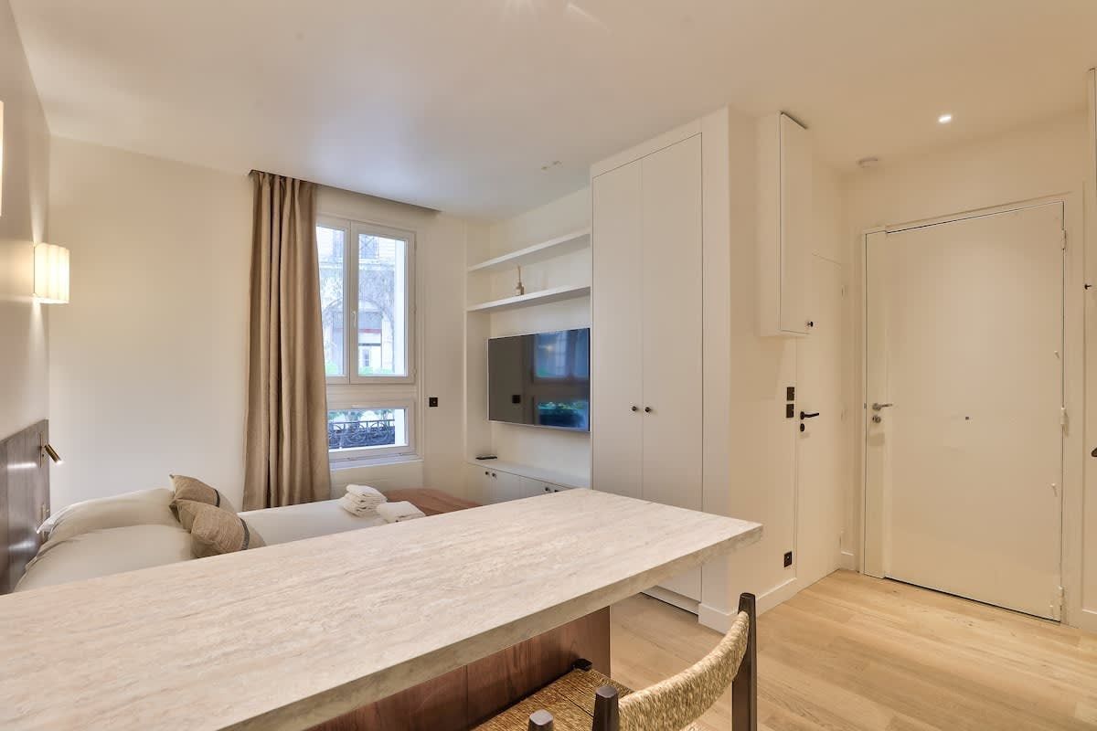 Tucked away in the 18th arrondissement, this newly refurbished studio is the perfect Parisian pied-à-terre. Just a ten-minute stroll from the Sacré-Cœur and moments from La Cigale, the location couldn’t be more vibrant. The space is compact – more like a hotel room, with the added benefit of a neat kitchen space for light bites and morning coffees. Step outside and you’ll be surrounded by Montmartre’s winding streets, buzzing cafes, and tempting patisseries. With free Wi-Fi, this cosy bolthole makes an ideal base for couples or solo travellers seeking Paris at their doorstep.