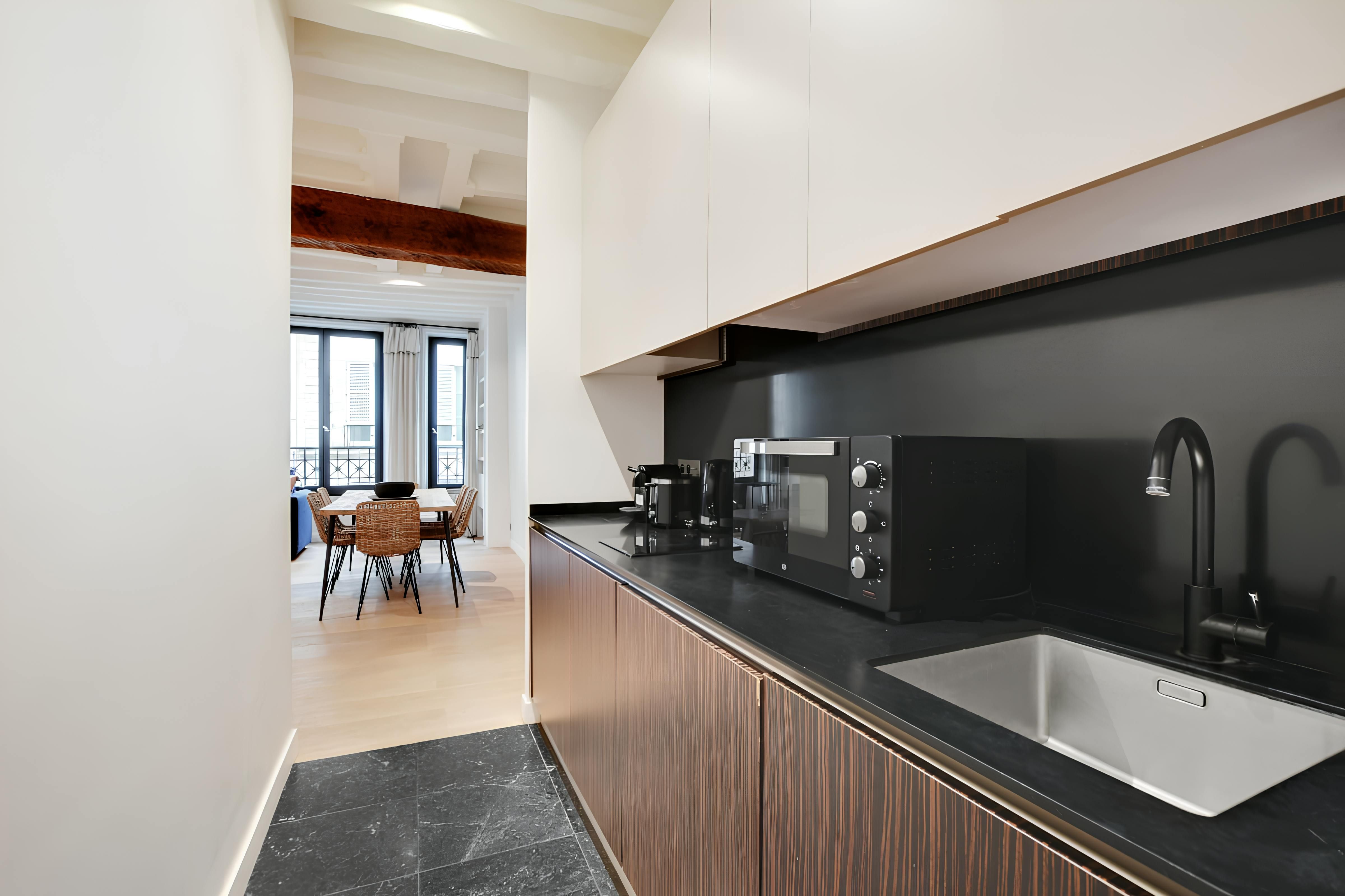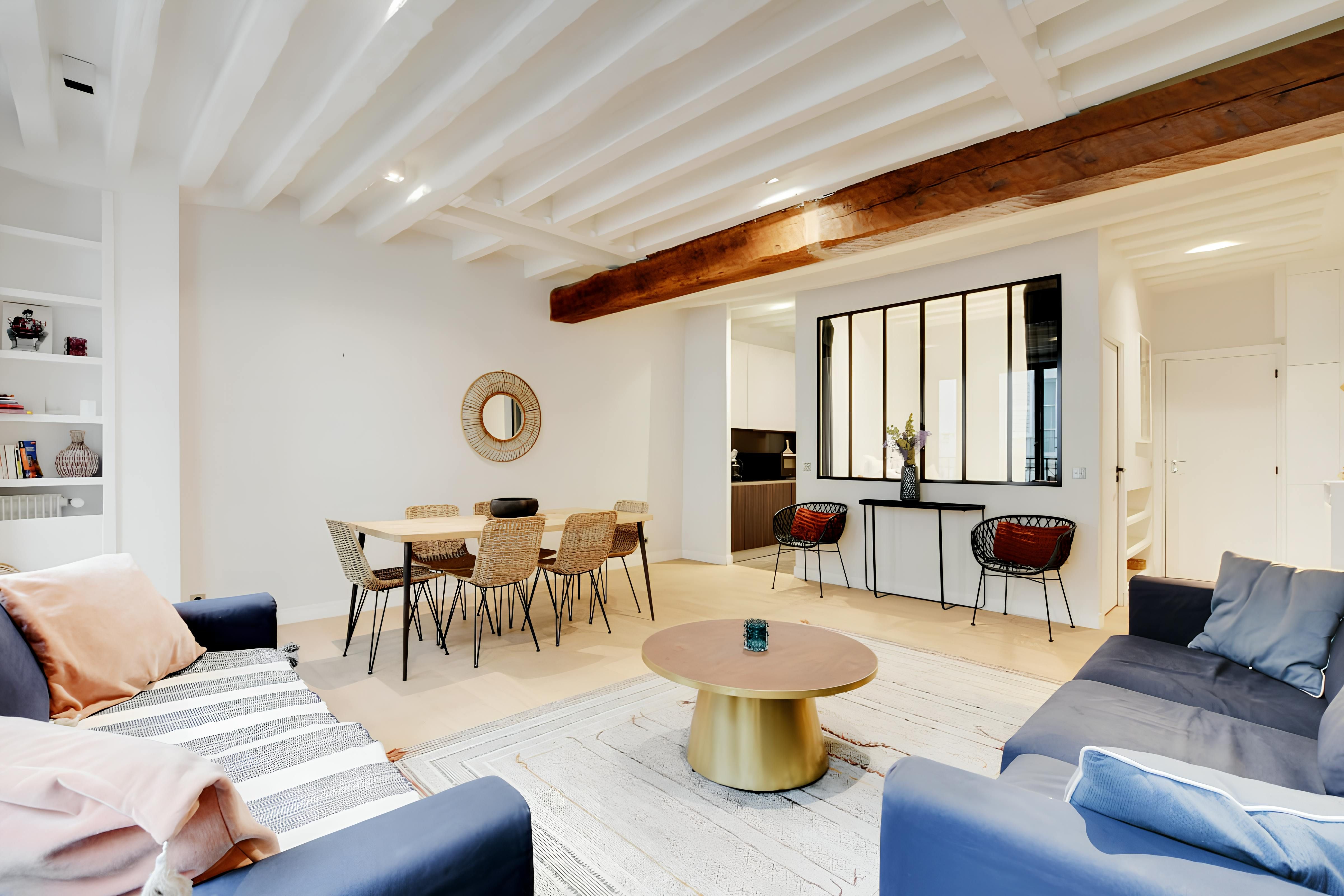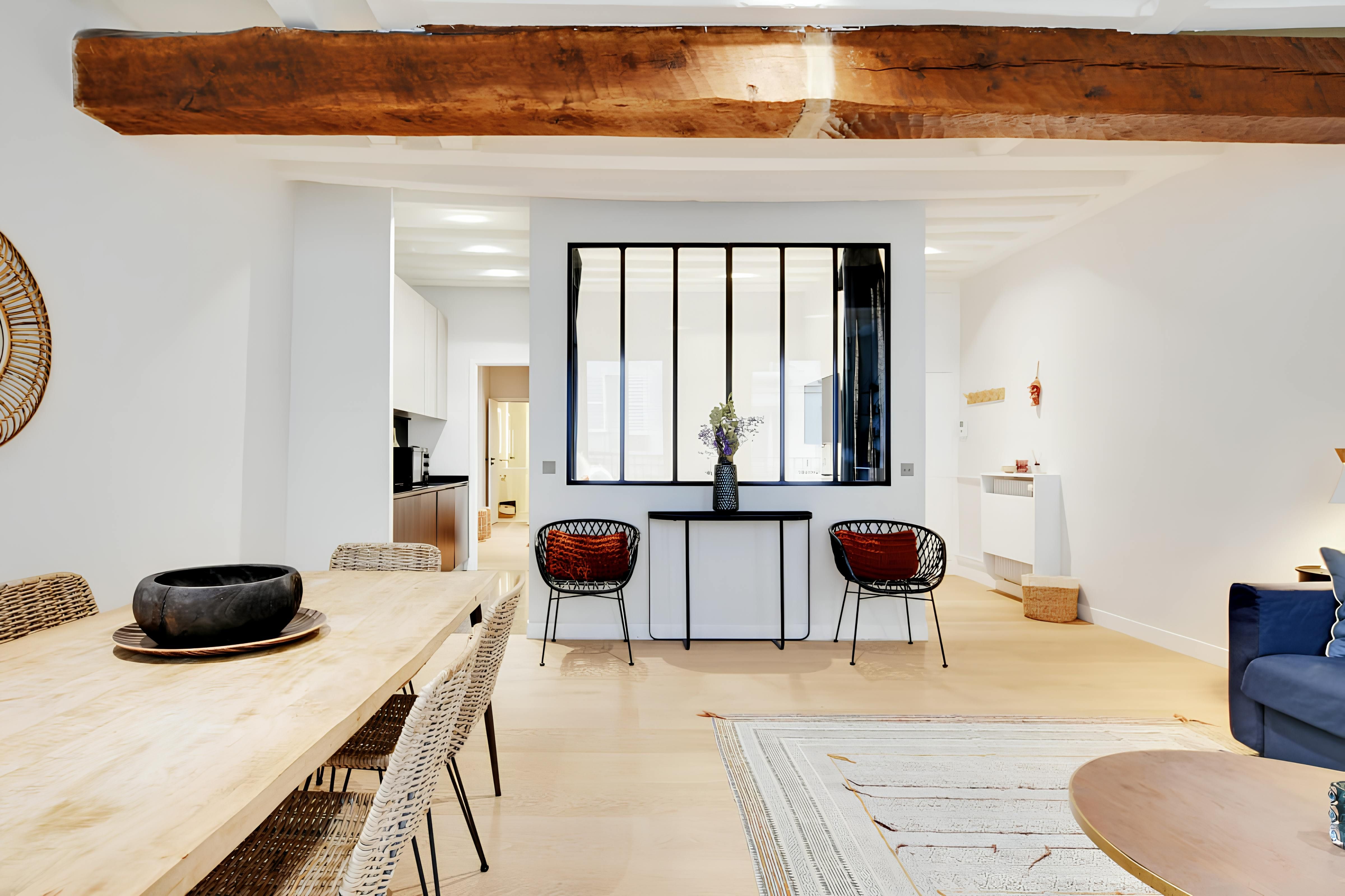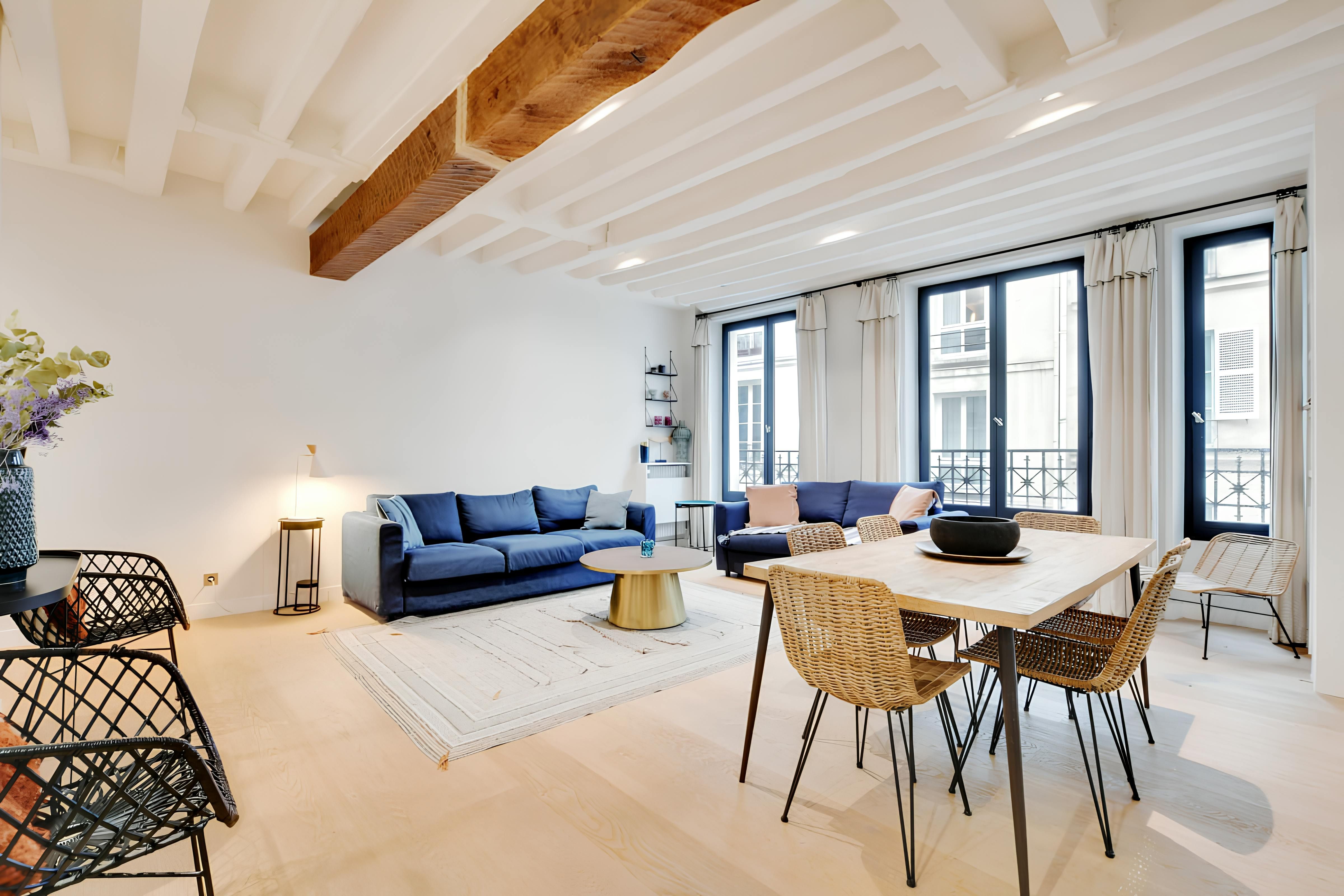 Nestled in the heart of Paris, this fuss-free home is an ideal base for family or friends on a city stay. We love the old beams, which add a splash of character to the home. Sure, everyone will need to share the en-suite bathroom, and you’ll need to be able to climb stairs to reach the apartment, but it’s a small price to pay for the location. After all, it’s a treat – you’re within walking distance of iconic landmarks including the Louvre Museum and Palais Garnier, both must-visits in Paris.