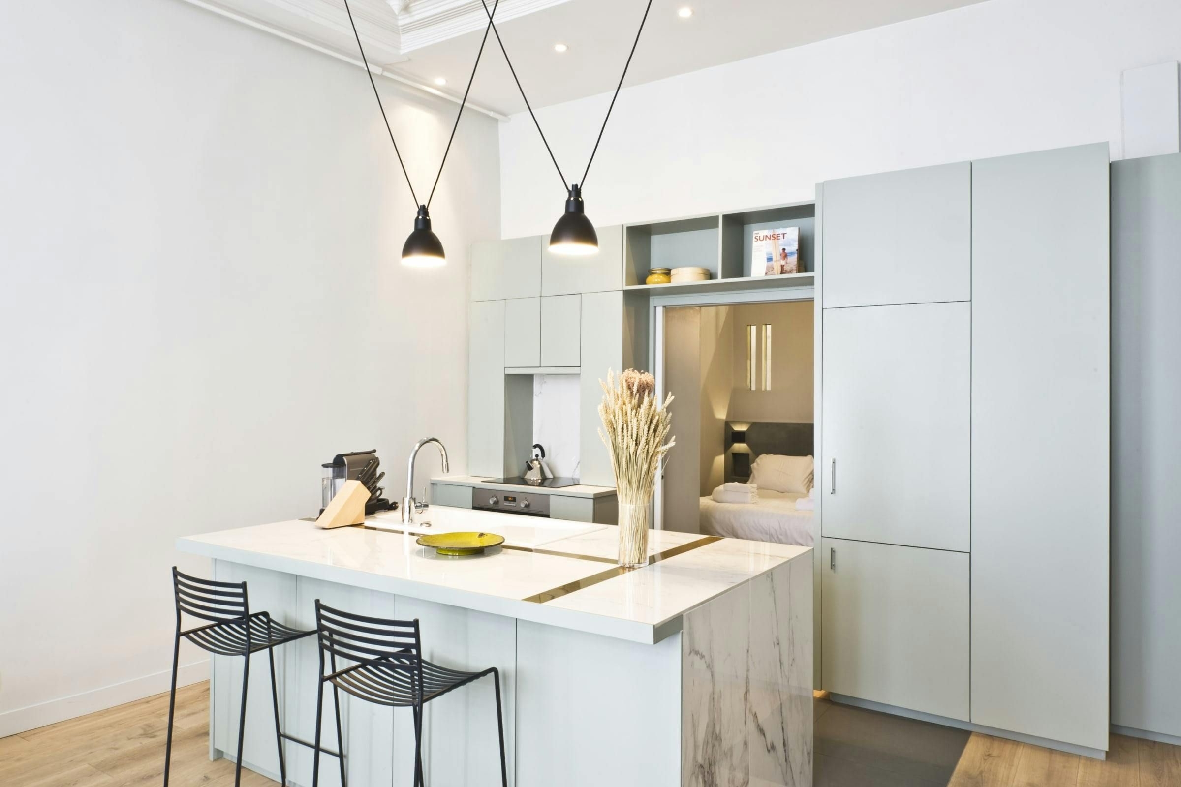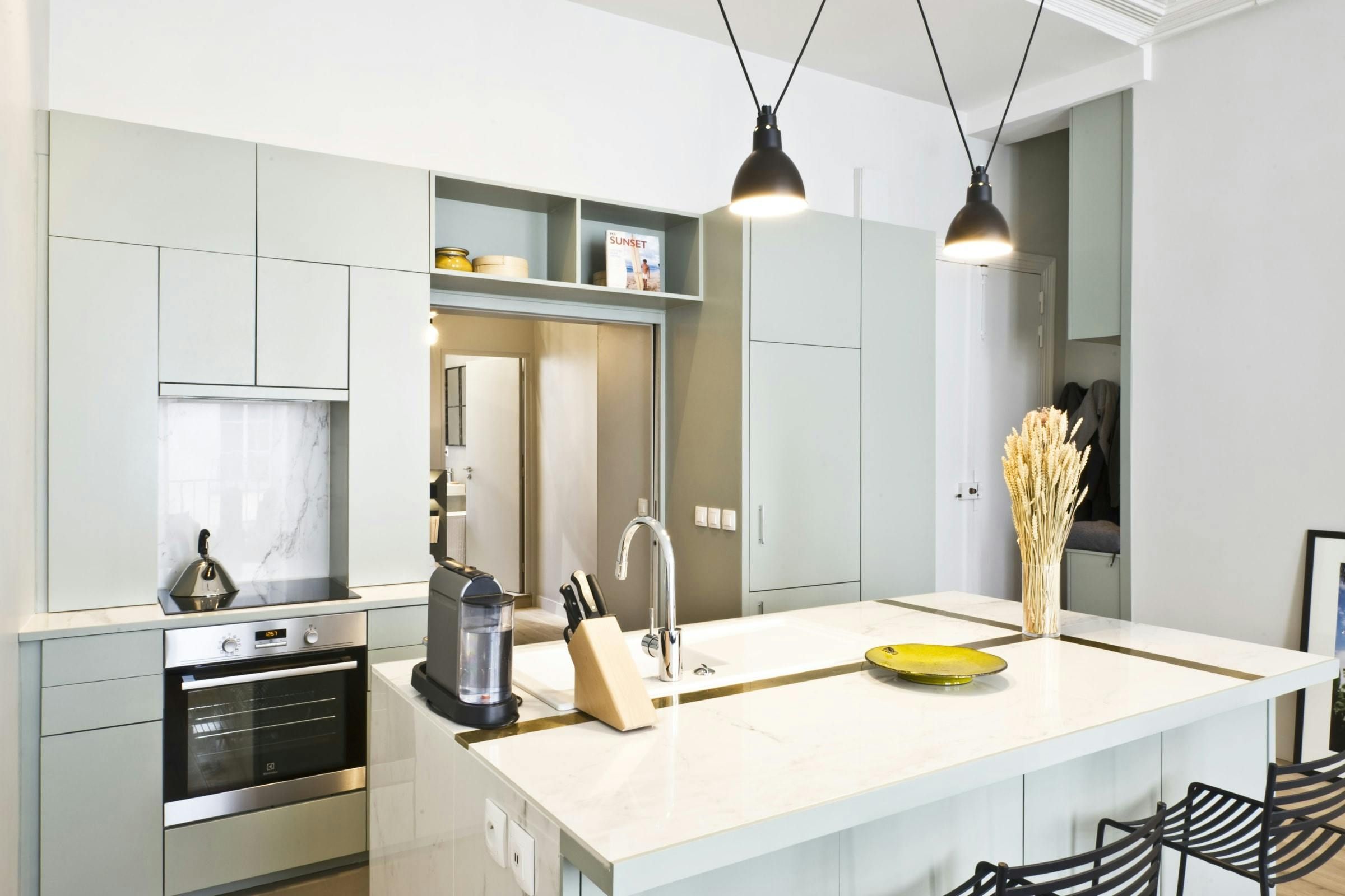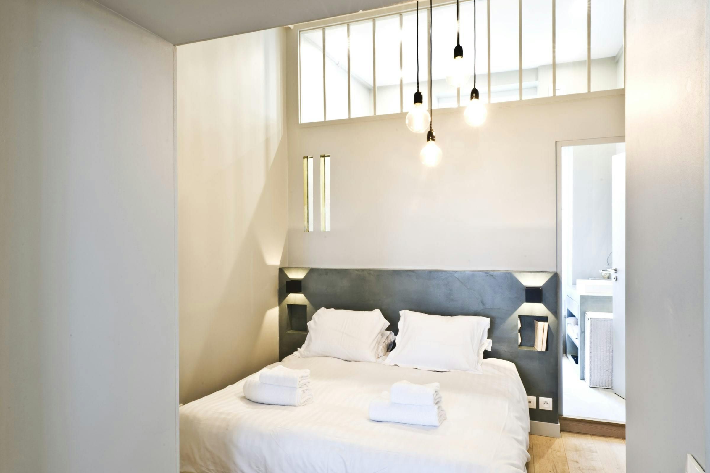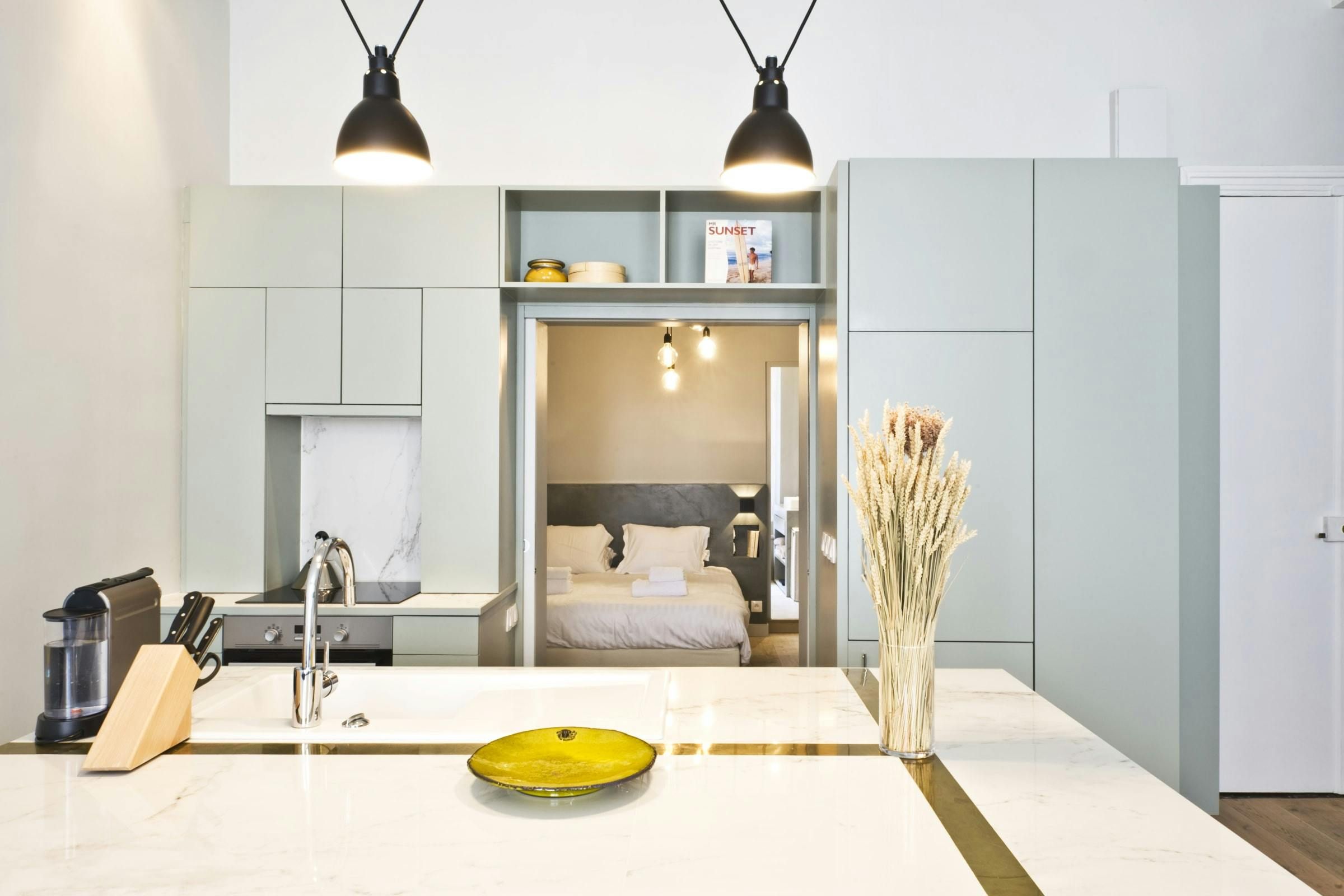 Available to guests studying or travelling for work, this apartment has a great location. You’ll find it on Rue d'Aboukir in the Bonne Nouvelle district, and it’s within walking distance of several cultural attractions. These include the Palais-Royal, the Centre Pompidou and the Louvre Museum. The apartment is located on the second floor (there’s no lift, so get ready for some stairs). We love this home's stylish open-plan living room – a renowned architect refurbished the place. It’s a great home from home to relax after a busy day.