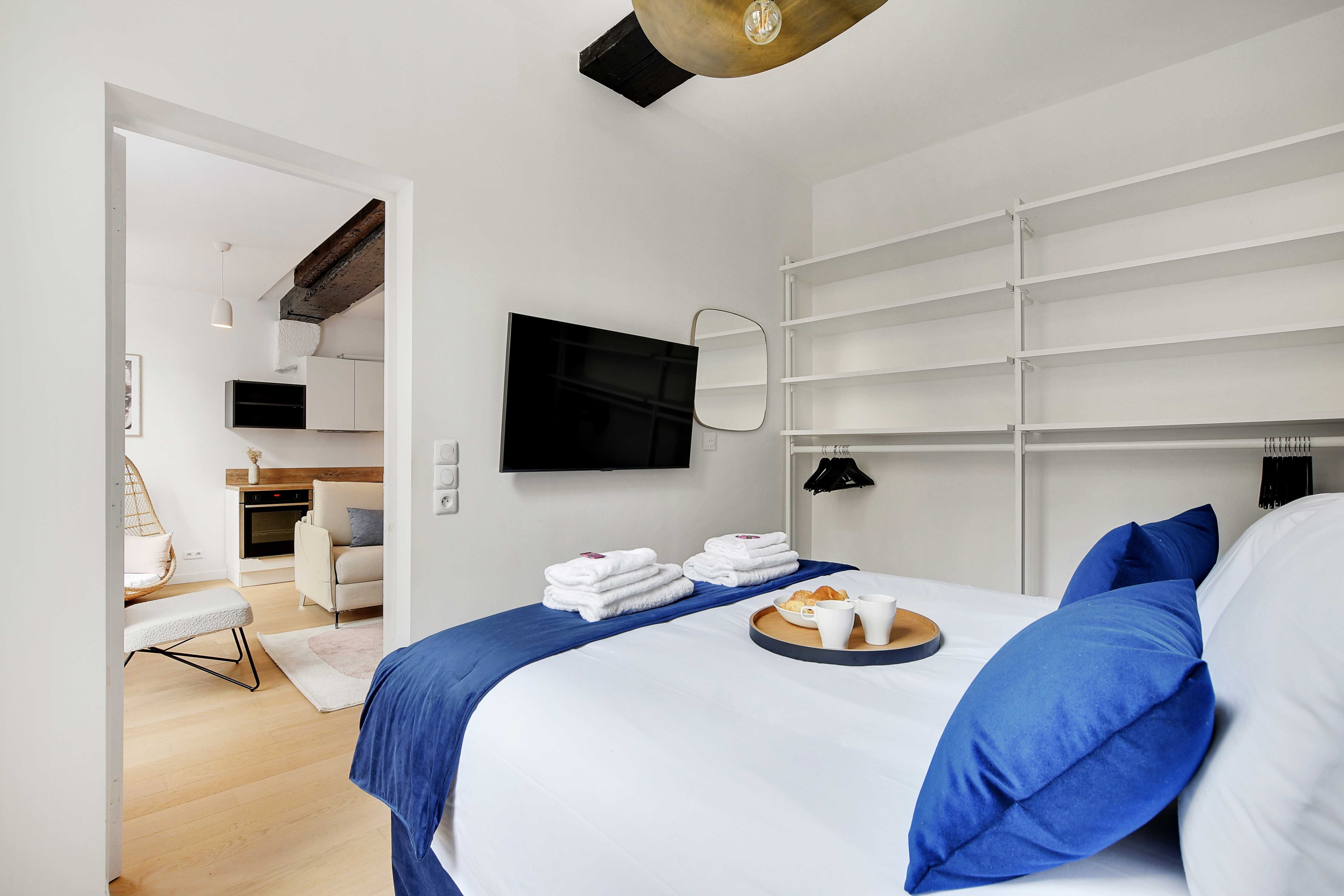 Step into chic Parisian living in this stylish retreat in the heart of the Marais. Just steps from the iconic Centre Pompidou, this light-filled apartment will welcome you with an open-plan living space and a fully equipped kitchen for your culinary adventures. On your doorstep, the Marais buzzes with boutiques, cafés, galleries, and centuries of history at every turn. Whether you’re here to explore world-class museums, indulge in French gastronomy, or rest your head on work stays, this is your perfect base for an unforgettable Paris stay.