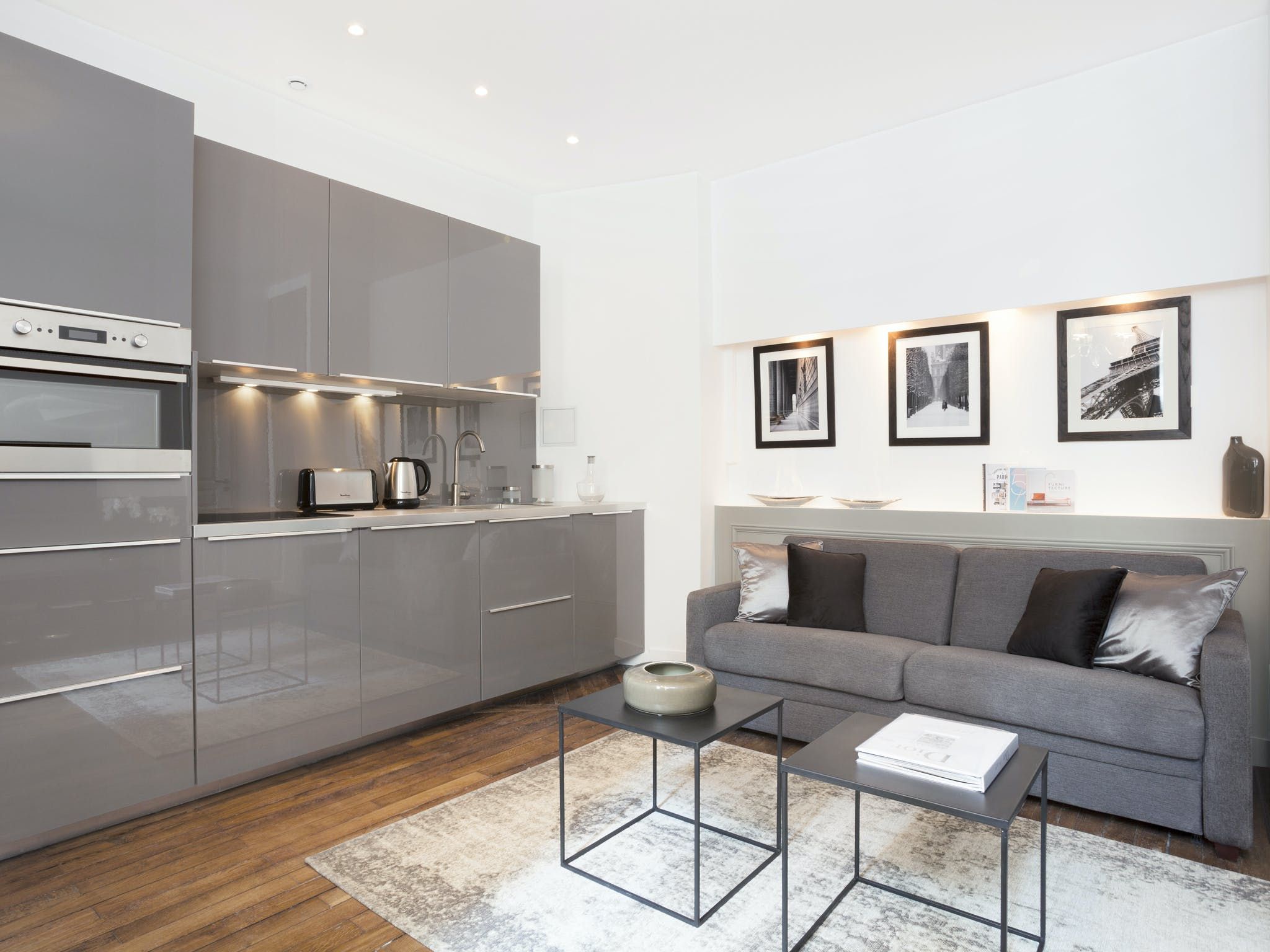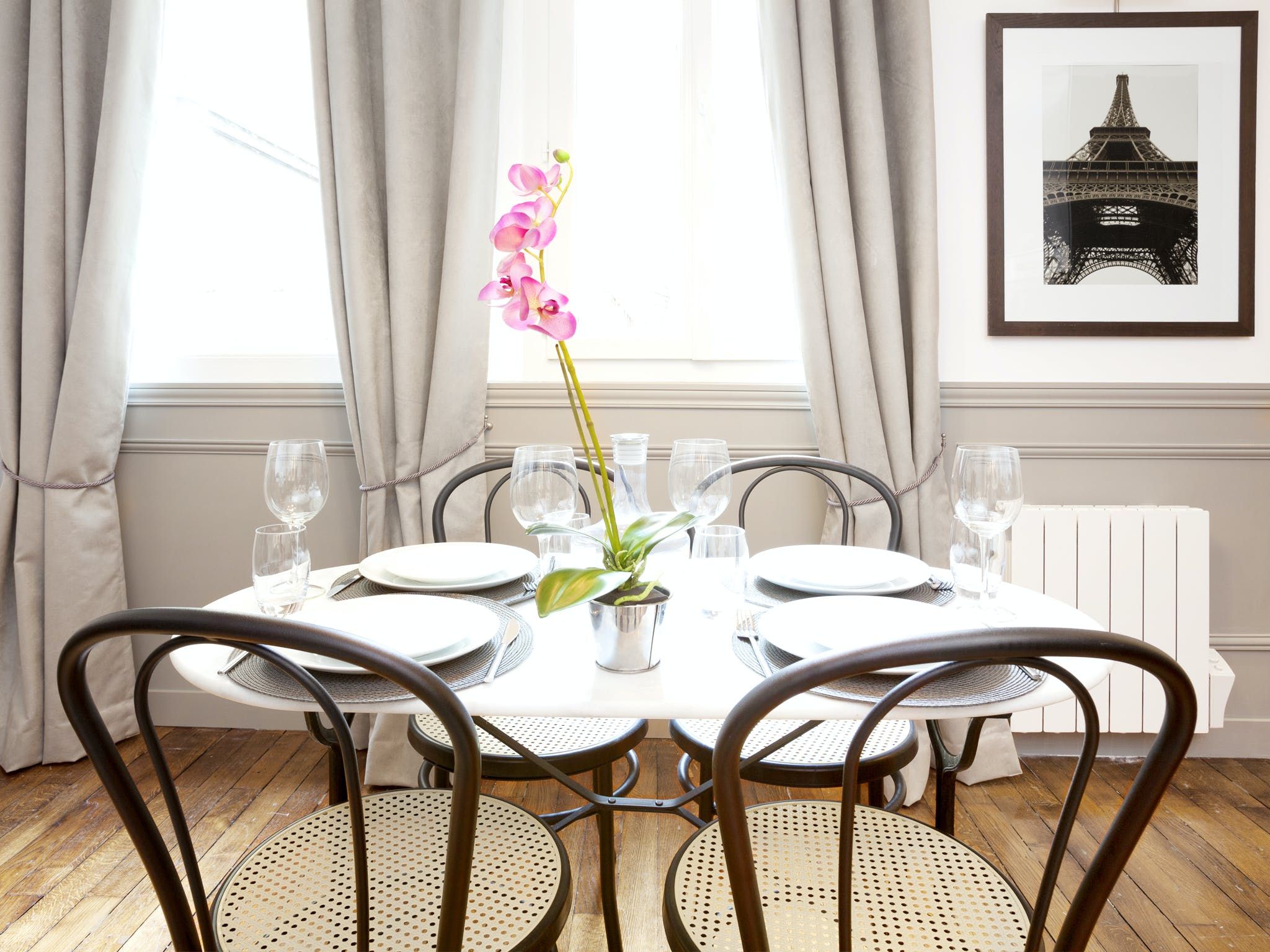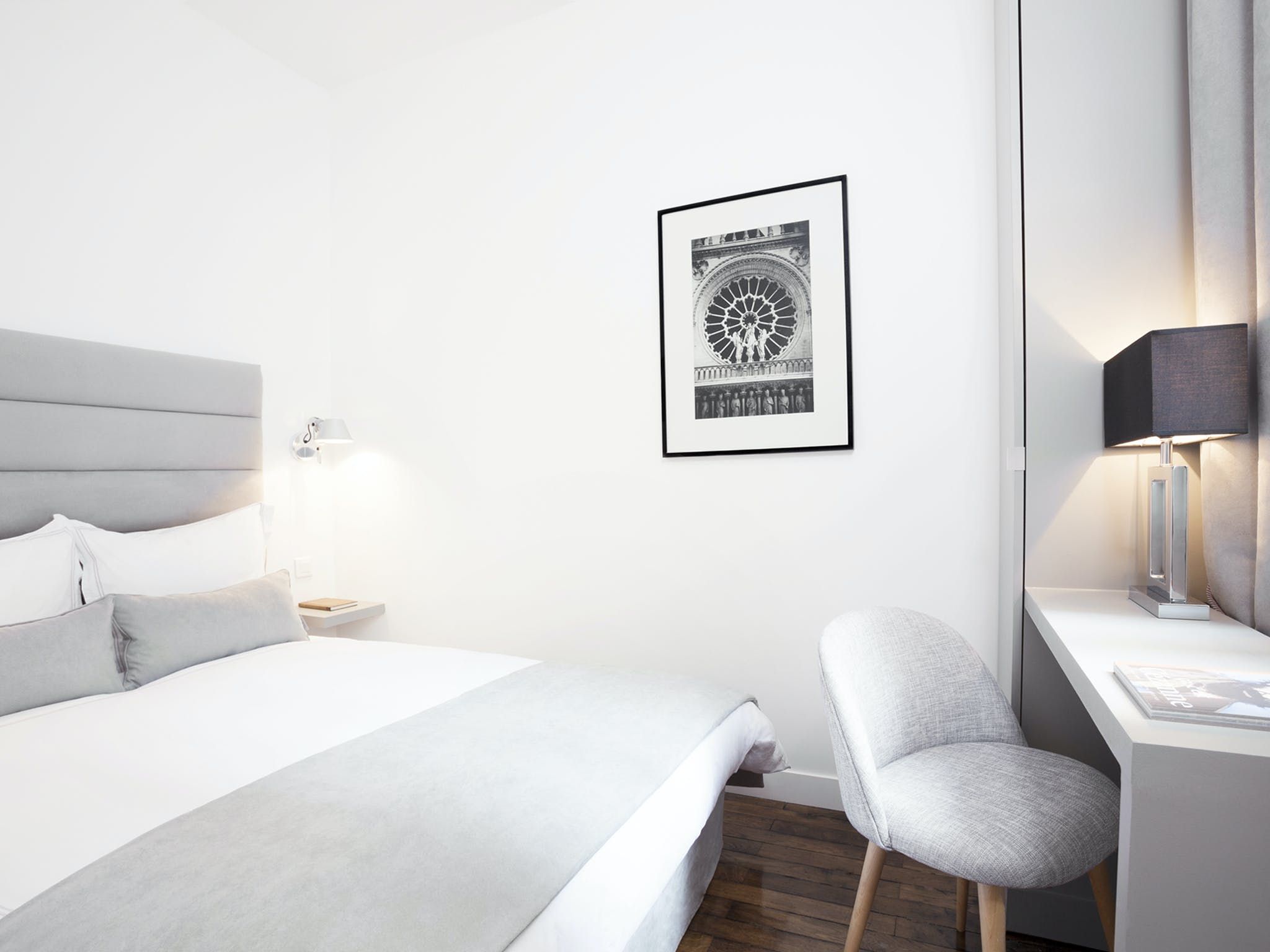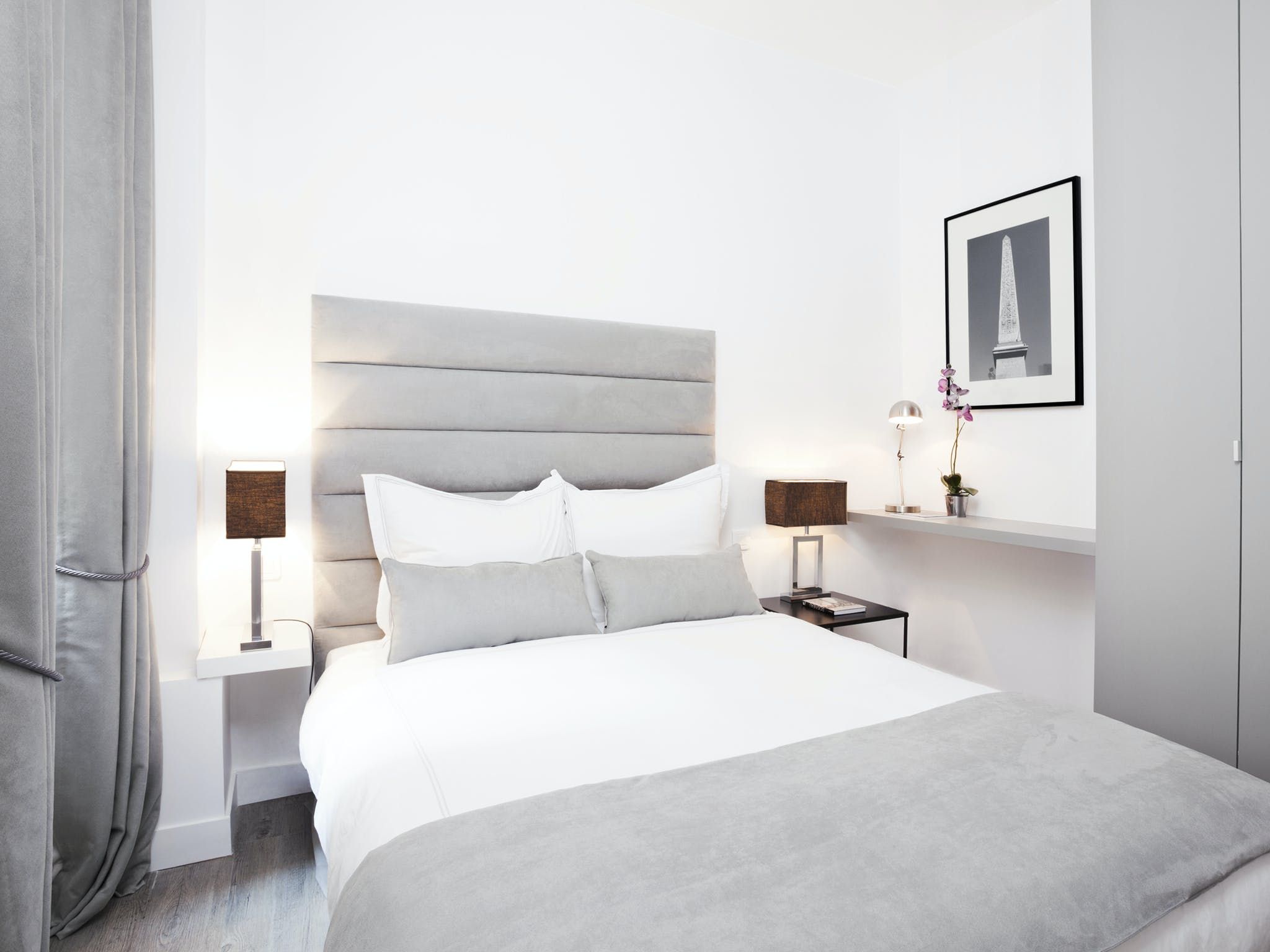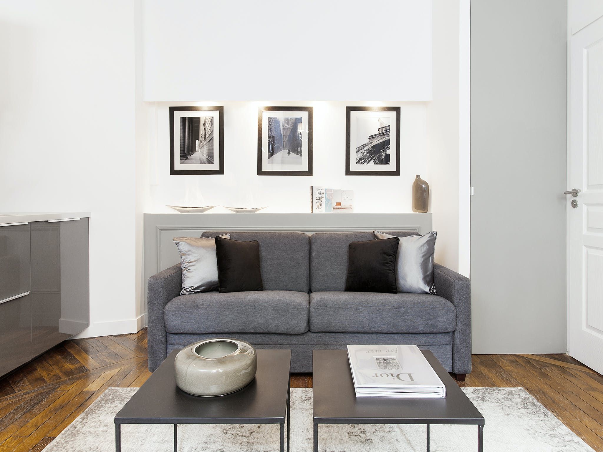 Located just a seven-minute walk from Paris’ Grands Boulevards, this elegant apartment exudes style and sophistication with its black, white and grey colour palette as well as its arty photographic prints on the walls. We love the nods to traditional Parisian culture here – like the chandelier and the bistro-style dining table – while decorative touches like the orchids and Buddha statue add a modern worldliness to the proceedings. The two comfortable bedrooms are equally chic with one boasting a desk should you need to catch up on work and both over-looking a traditional Parisian courtyard. Outside of your home, you’ve got plenty to see and do within easy walking distance, including the Louvre (twenty minutes), the vibrant Marais district (fifteen minutes), the Opéra Garnier (twenty-five minutes) and the irresistible Musée du Chocolat (five minutes).