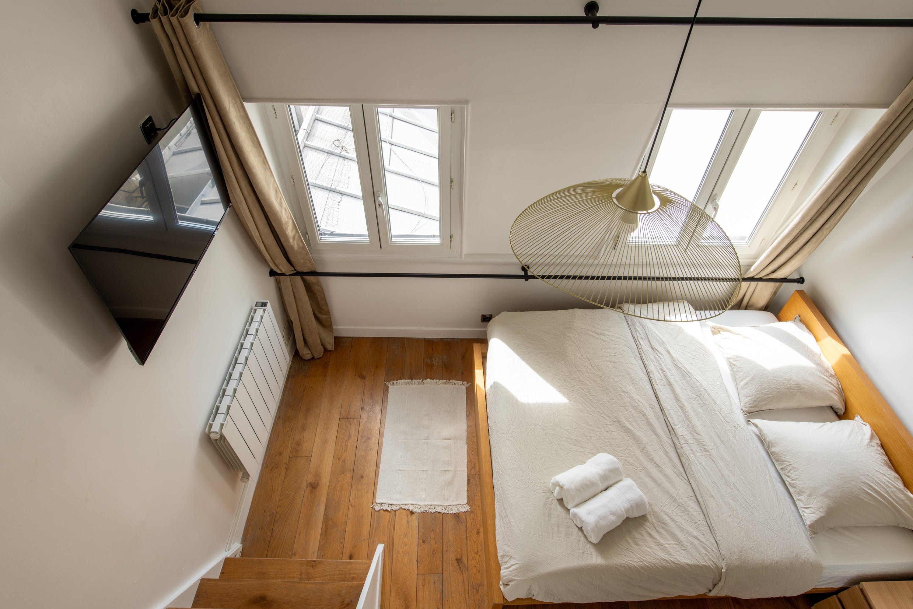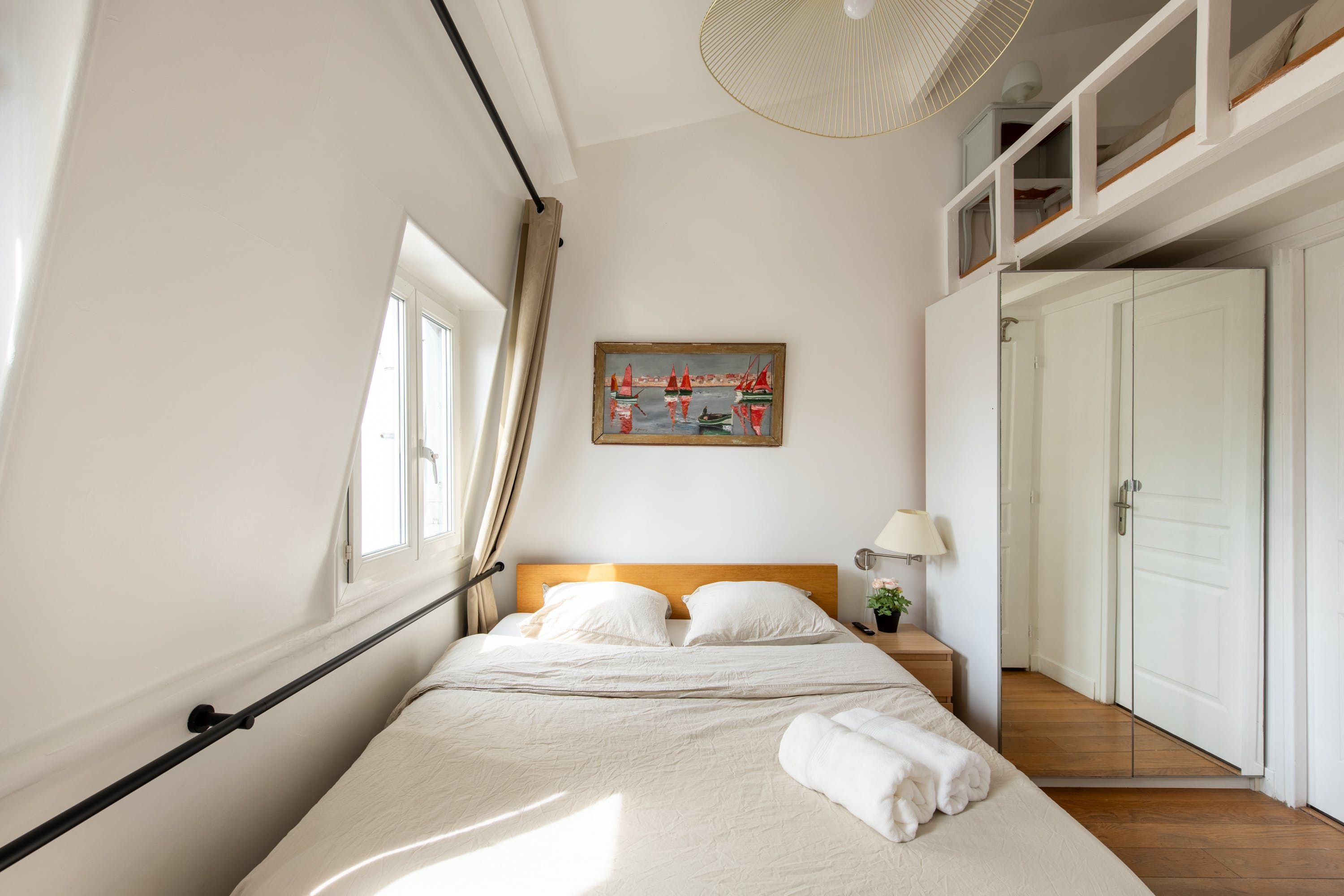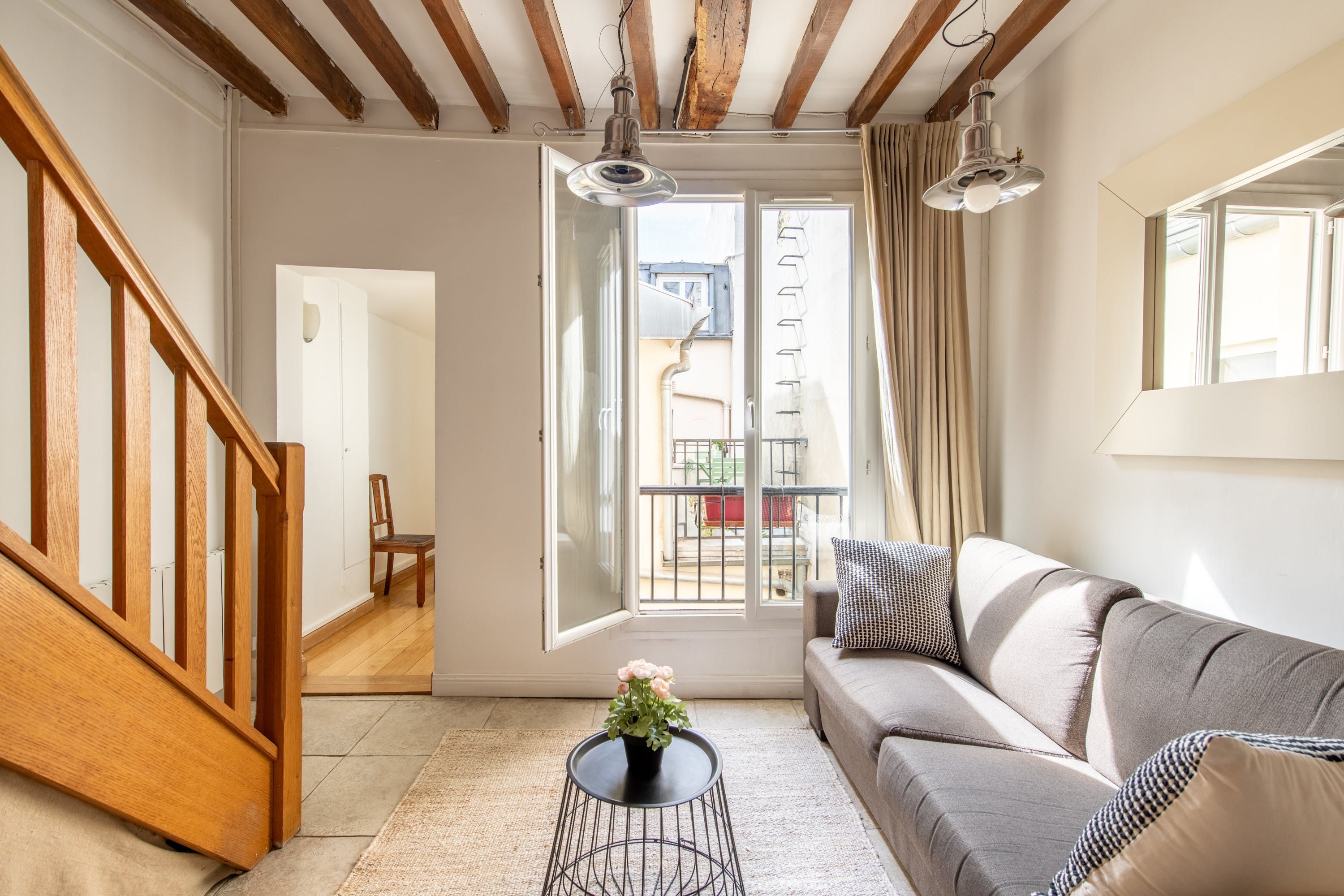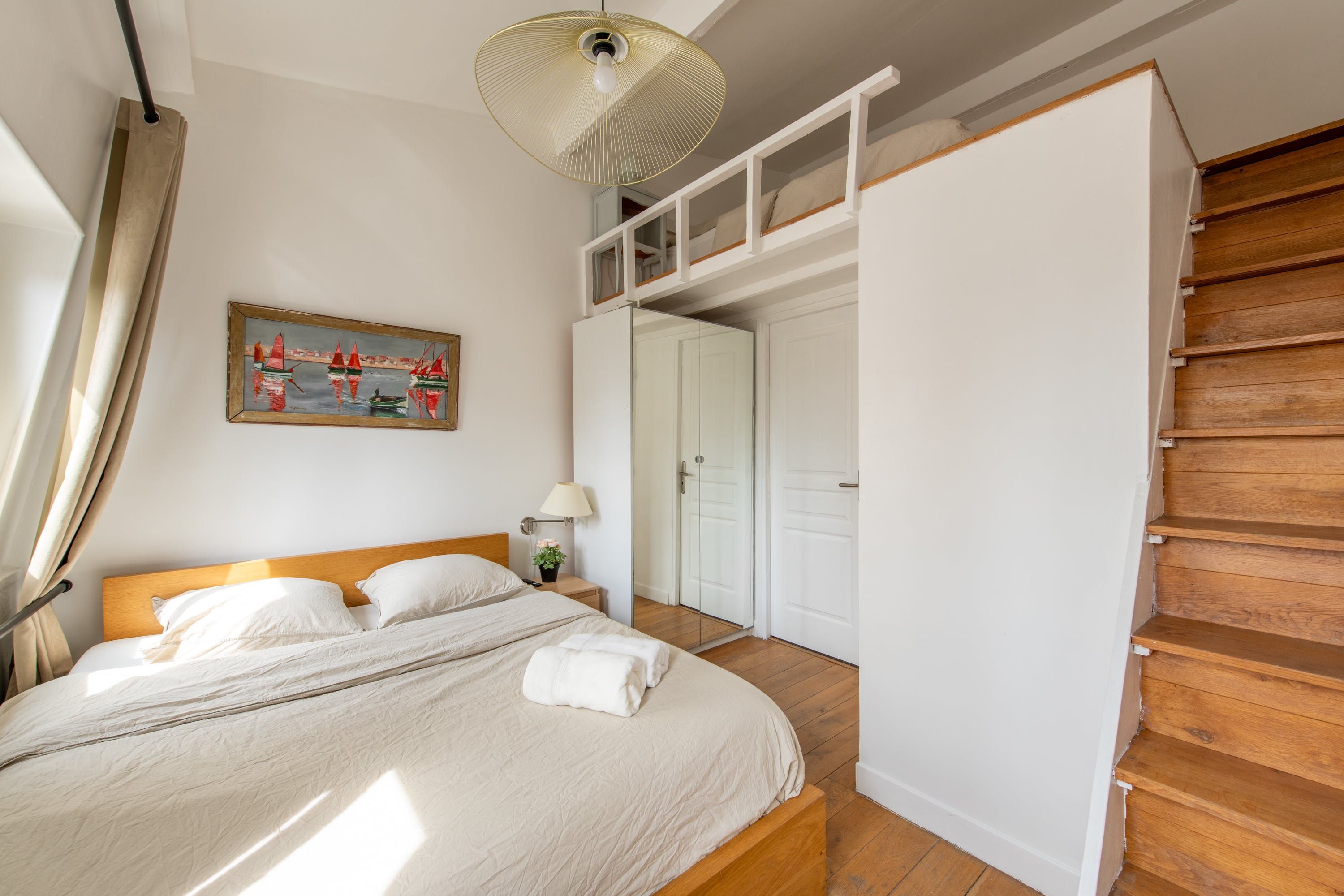 This bright and welcoming home is a great base for a break in Paris. It’s on the fifth floor and the apartment itself is spread over two floors, so it won’t suit everybody – and you may want to pack light. It's a superb option for groups of friends or a couple looking for a little extra room. We love the little terrace, where you can take in the view of the city while sipping wine. Location-wise, you’re ideally situated in Châtelet-les-Halles, close to bars, restaurants, and museums – Centre Pompidou is just a few minutes away on foot.