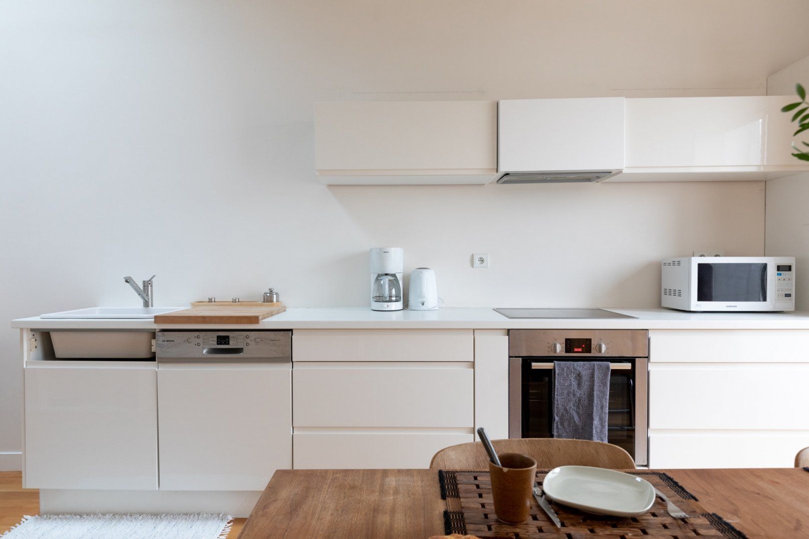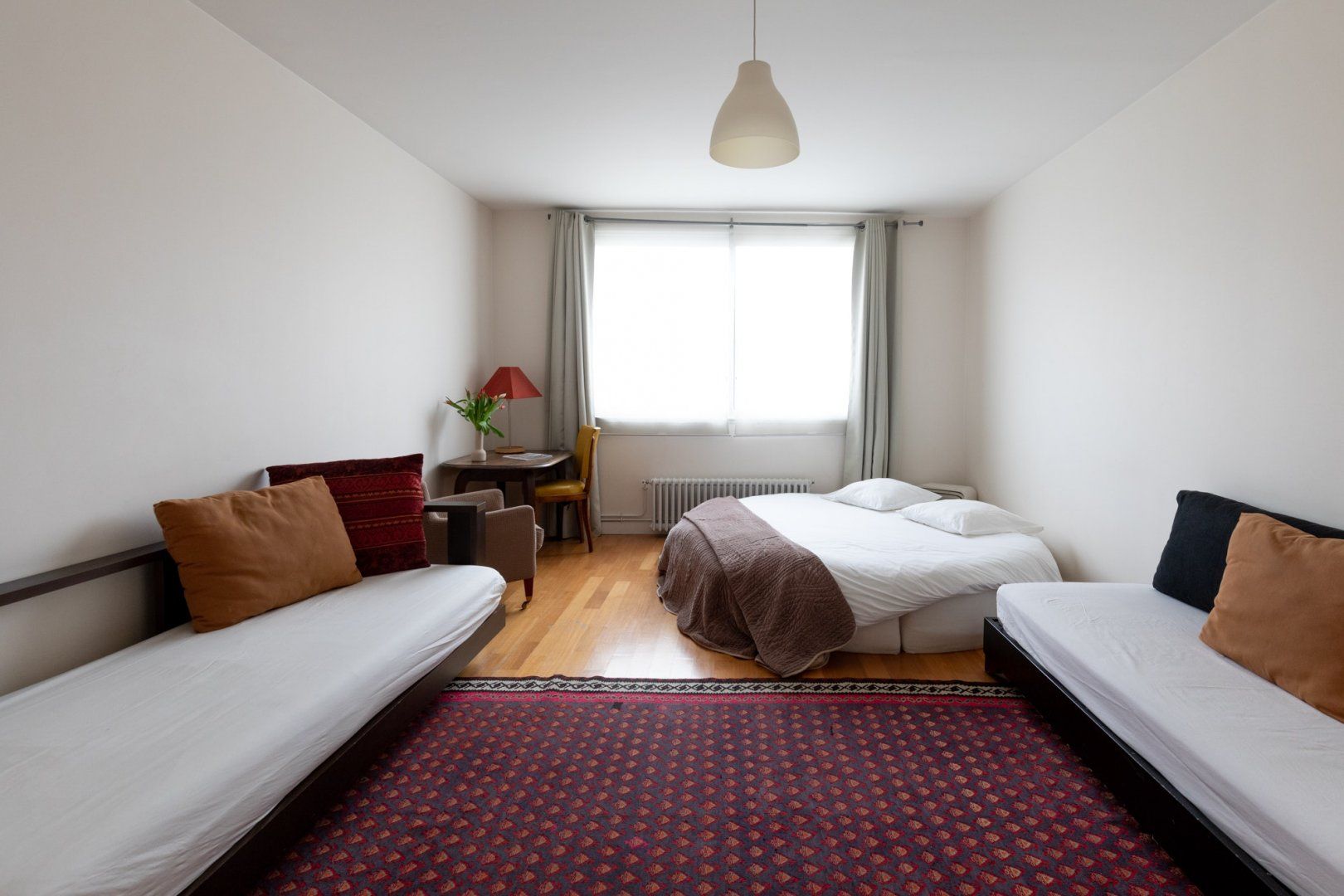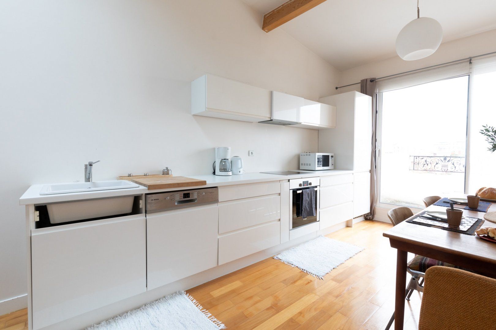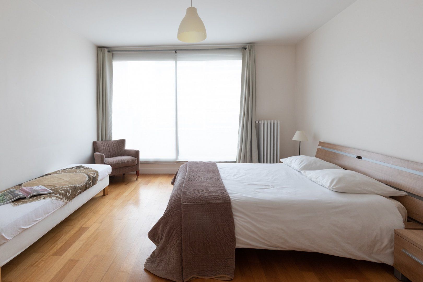 It can sometimes be a challenge to find family-sized apartments in the centre of cities, so this home in northeast Paris will be absolutely perfect for the right group. Upon entrance, you'll find a long, open-concept living area, with a lounge on one side and a minimalist kitchen finished in a dazzling white at the other. Two large windows at either end mean that there's a bountiful of natural light and it never feels anything less than fresh and inviting. Upstairs, two equally bright bedrooms have a variety of sleeping options — a versatility that families will find invaluable. In the local neighbourhood, Parc des Buttes-Chaumont sits at the end of the street, while one of the city's two Chinatowns — found in Belleville, the birthplace of Édith Piaf — can be reached in twenty minutes on foot.